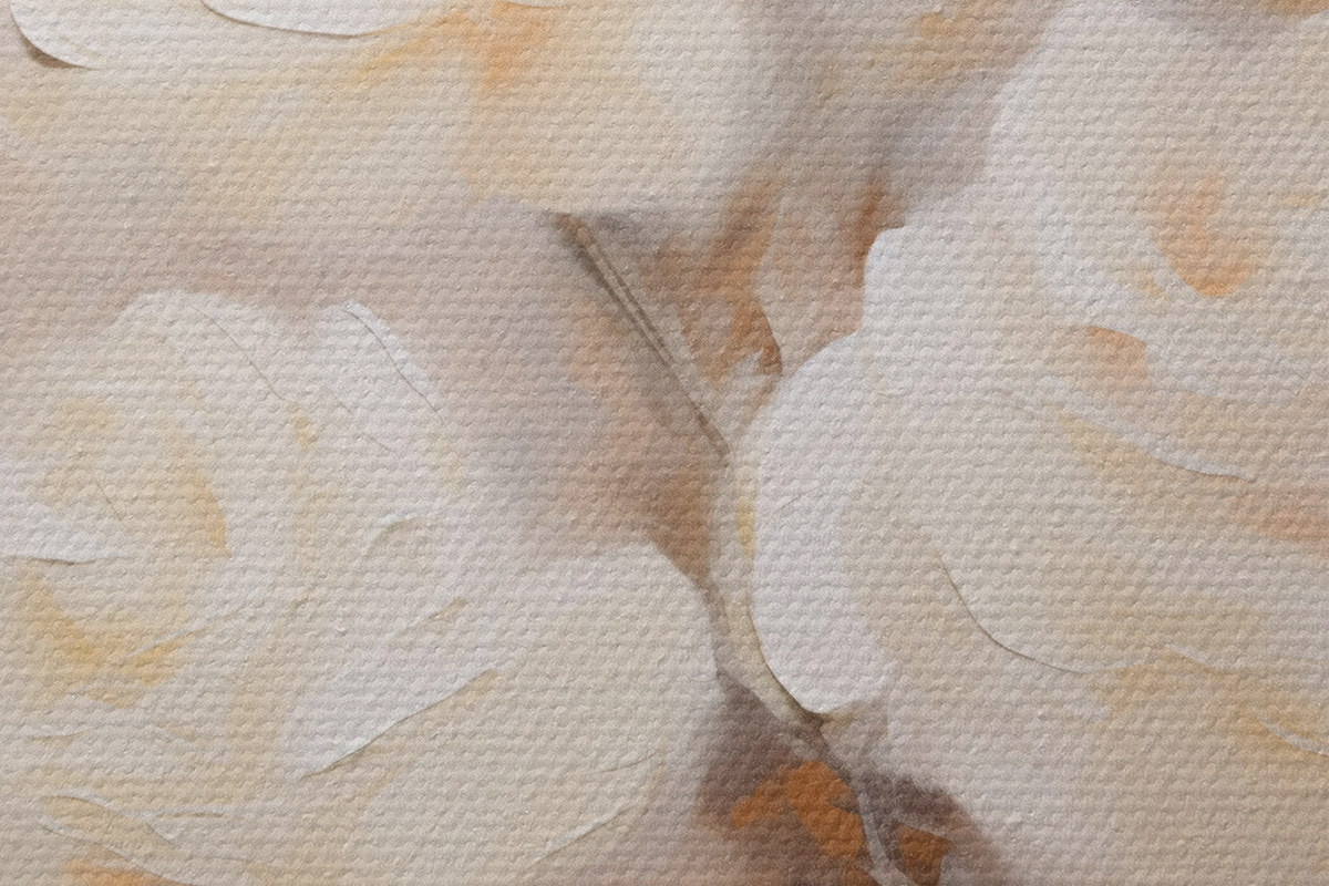 Immagine Rose bianche con petali morbidi, con uno sfondo di colori tenui e forme sfocate, che creano un effetto sognante Nr r43177