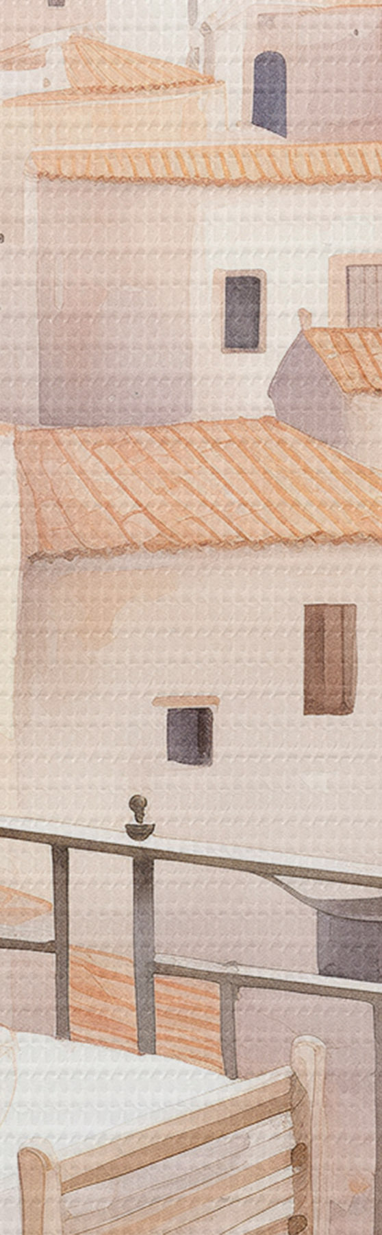 Immagine Tramonto sul balcone, Italia, architettura, fiori in fiore, stile acquerello Nr r43184