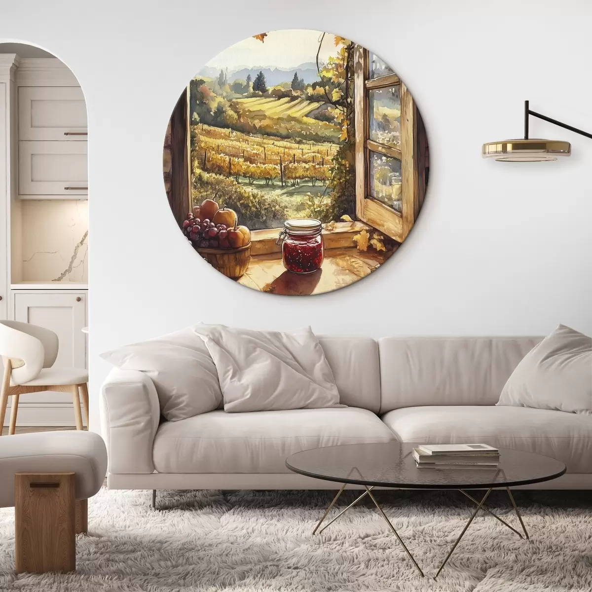 Quadri rotondi Raccolta nel villaggio, rustico, frutta, marmellata, paesaggi naturali, stile acquerello r43186