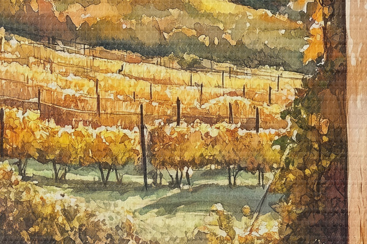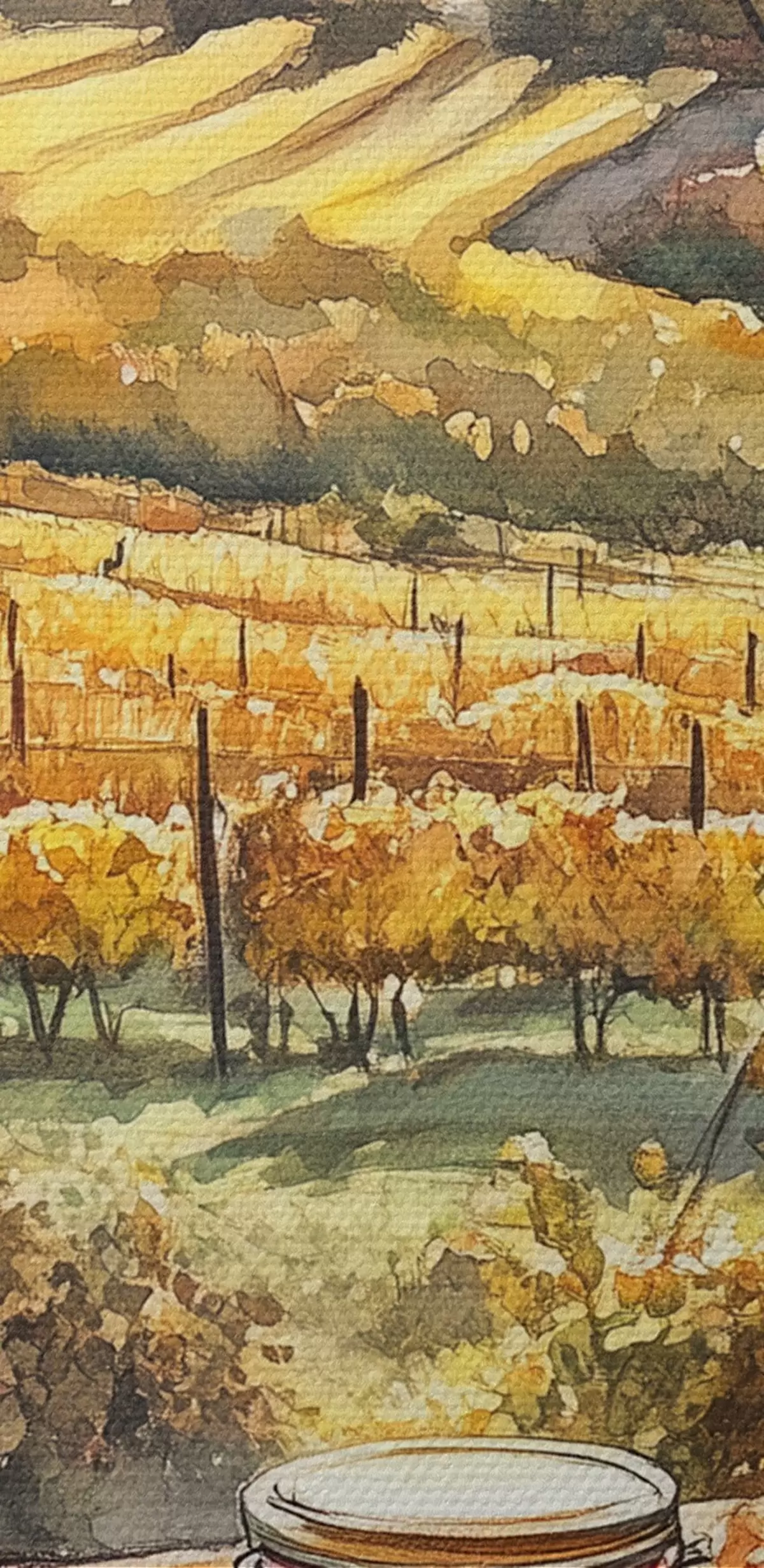 Immagine Raccolta nel villaggio, rustico, frutta, marmellata, paesaggi naturali, stile acquerello Nr r43186