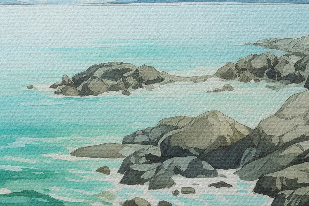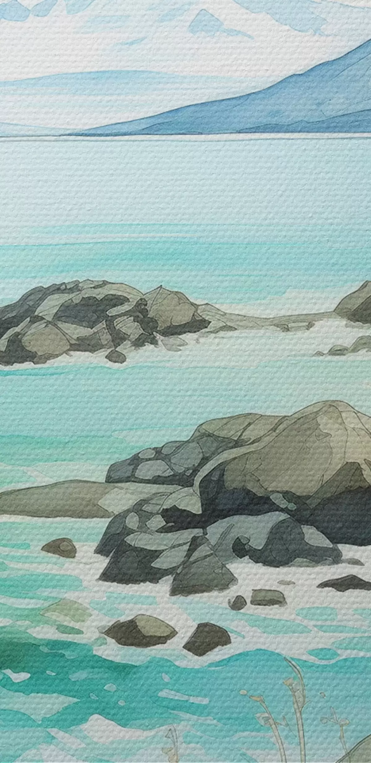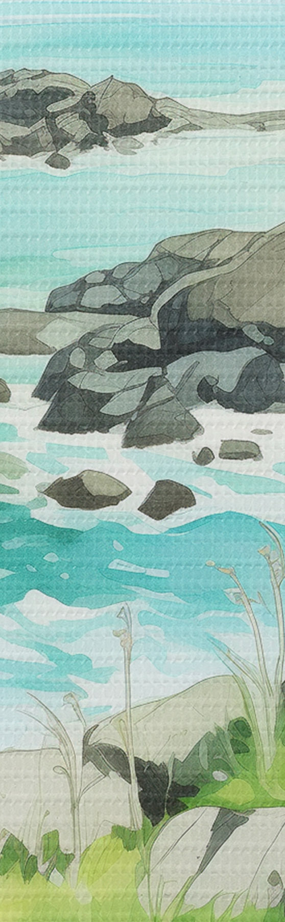 Immagine Norvegia natura, fiordi, paesaggio estivo, erba verde, montagne, stile acquerello Nr r43188