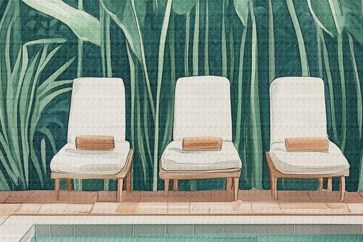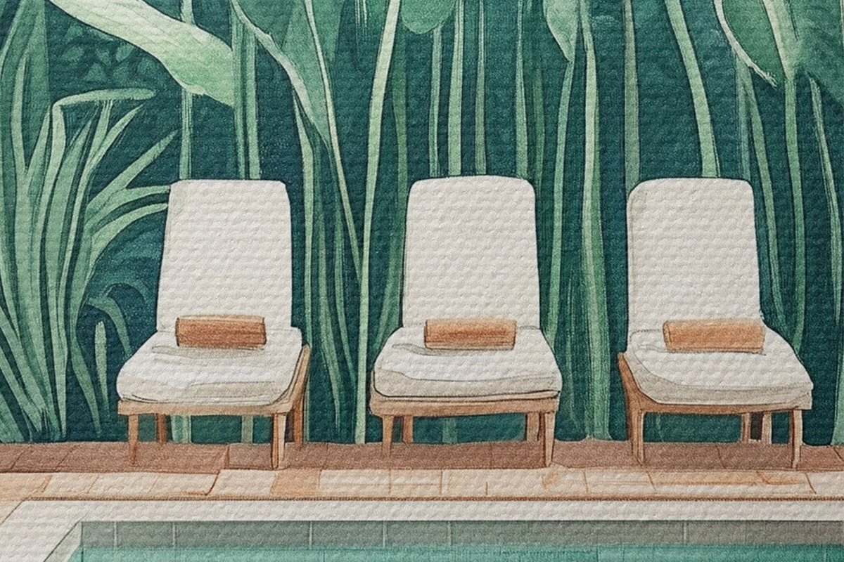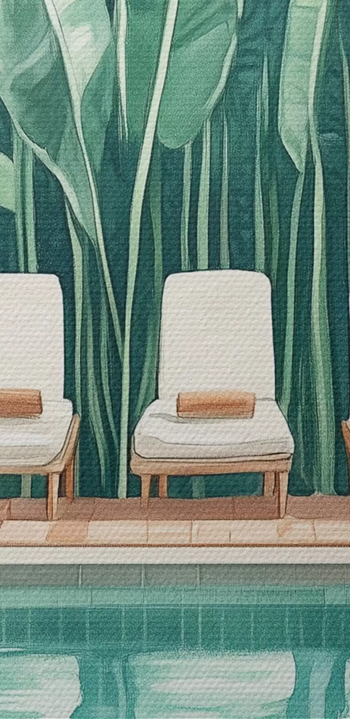 Immagine Piscina estiva estetica nel giardino tropicale, stile acquerello Nr r43192
