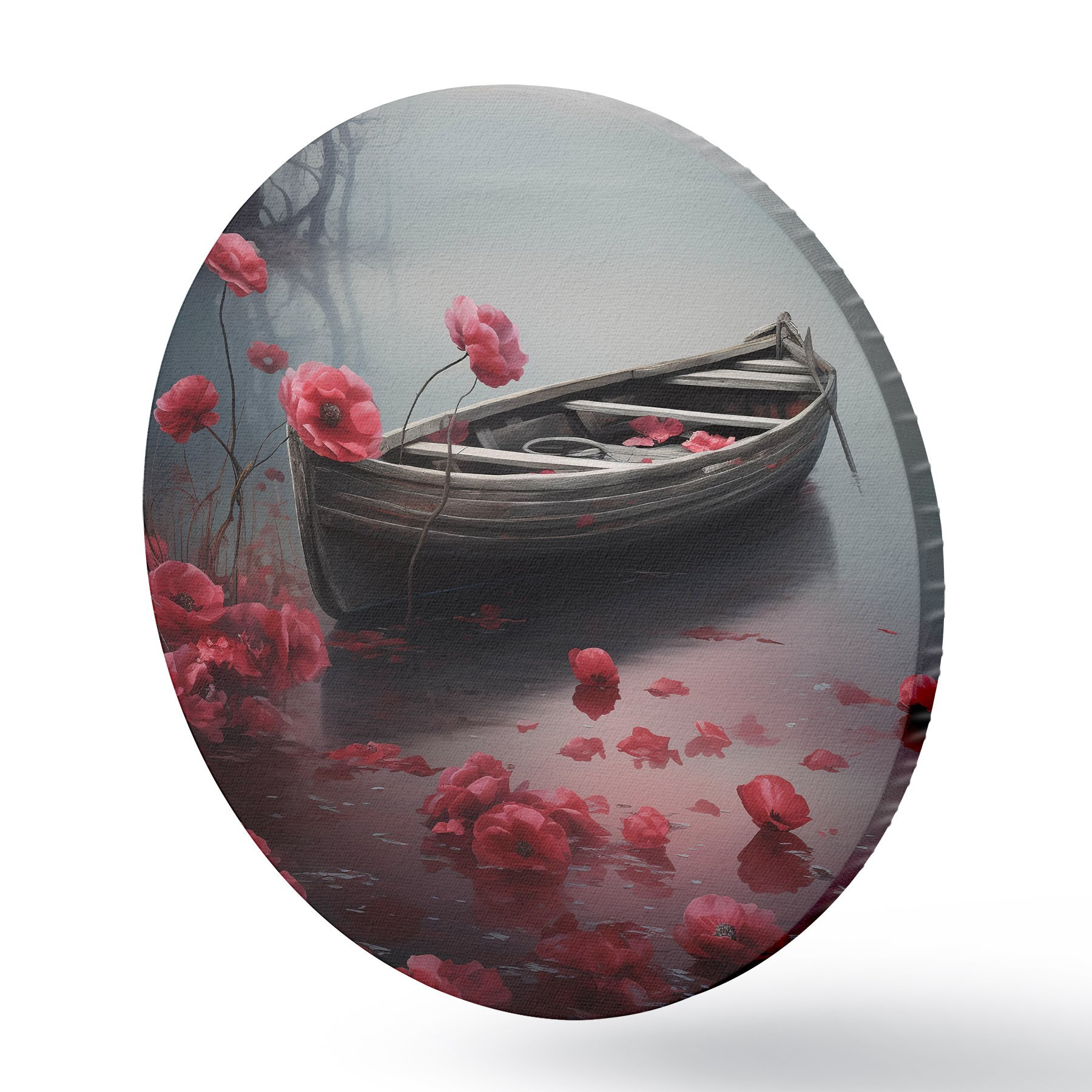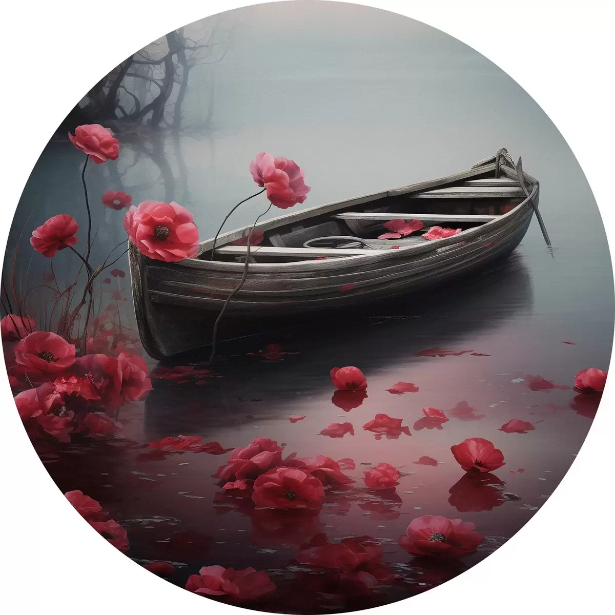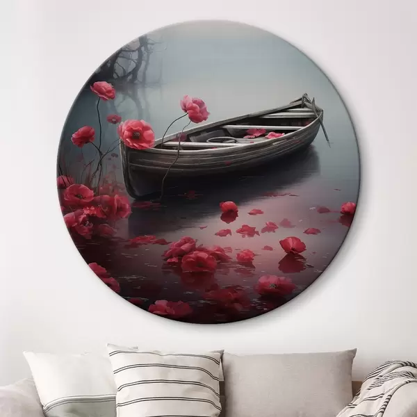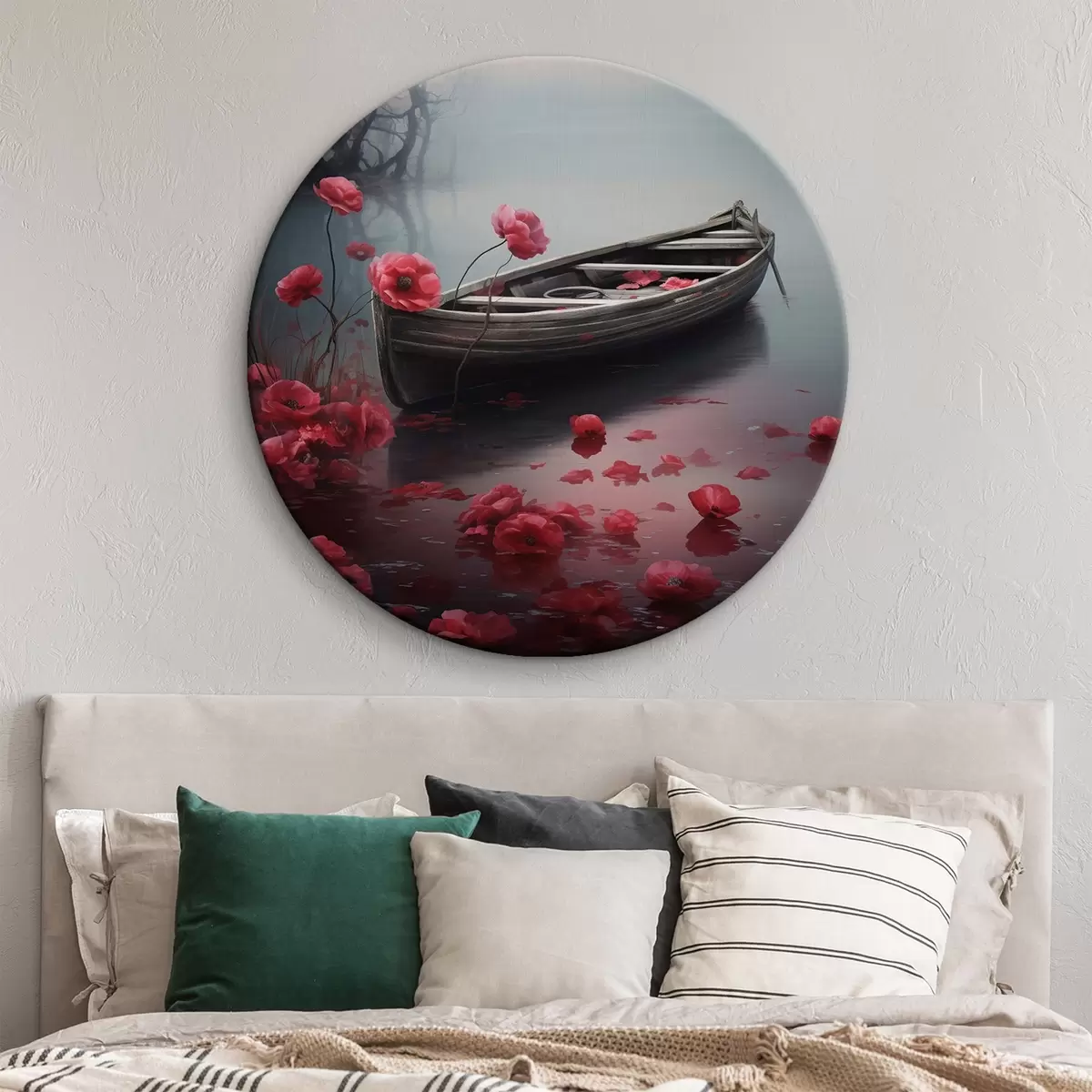 Quadri rotondi Barca e fiori di papavero sul lago r43203