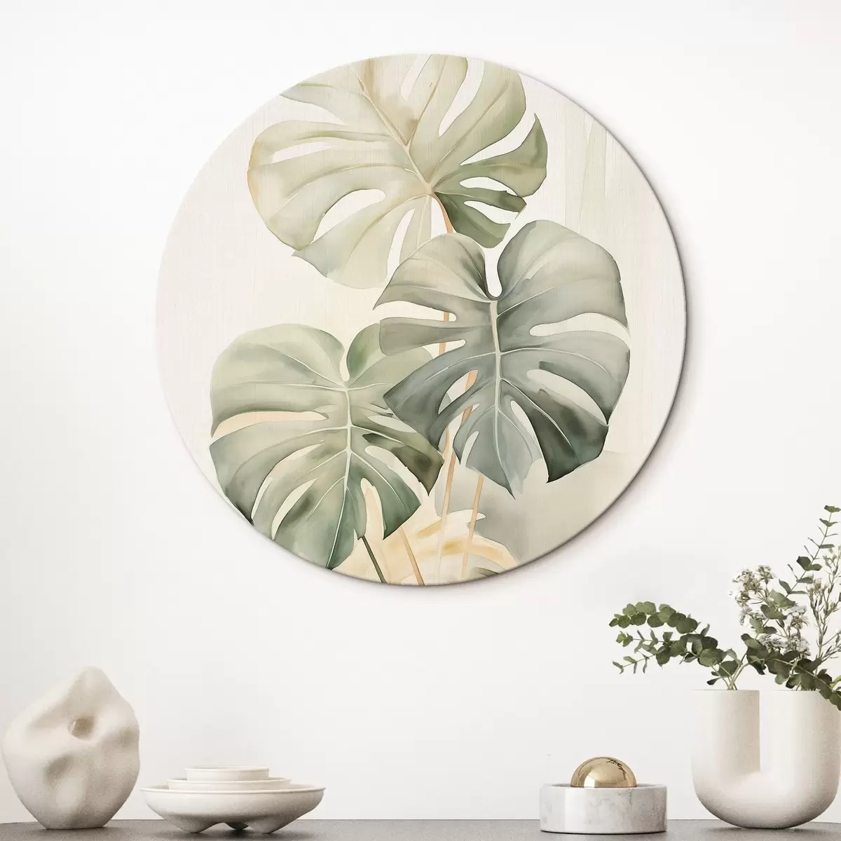 Quadri rotondi Foglie di Monstera in tecnica acquerello r43210