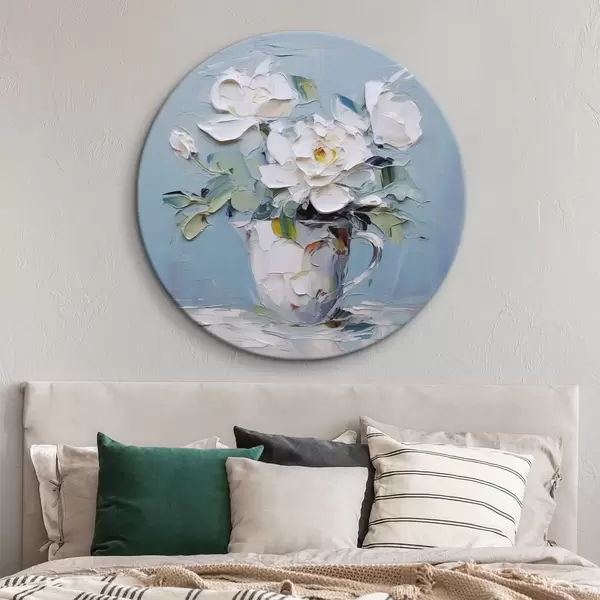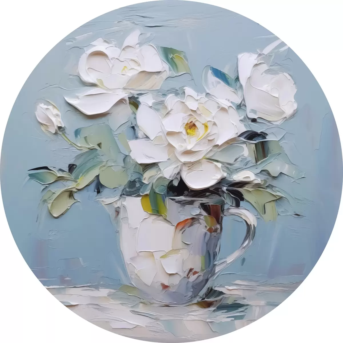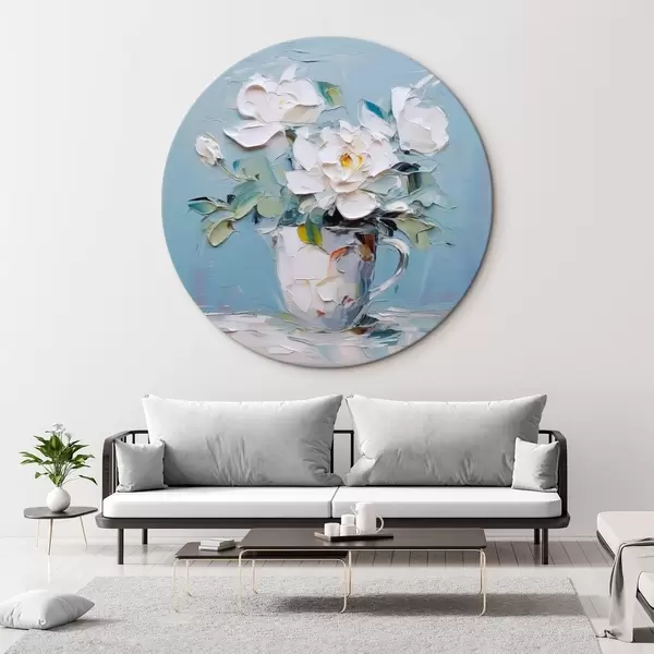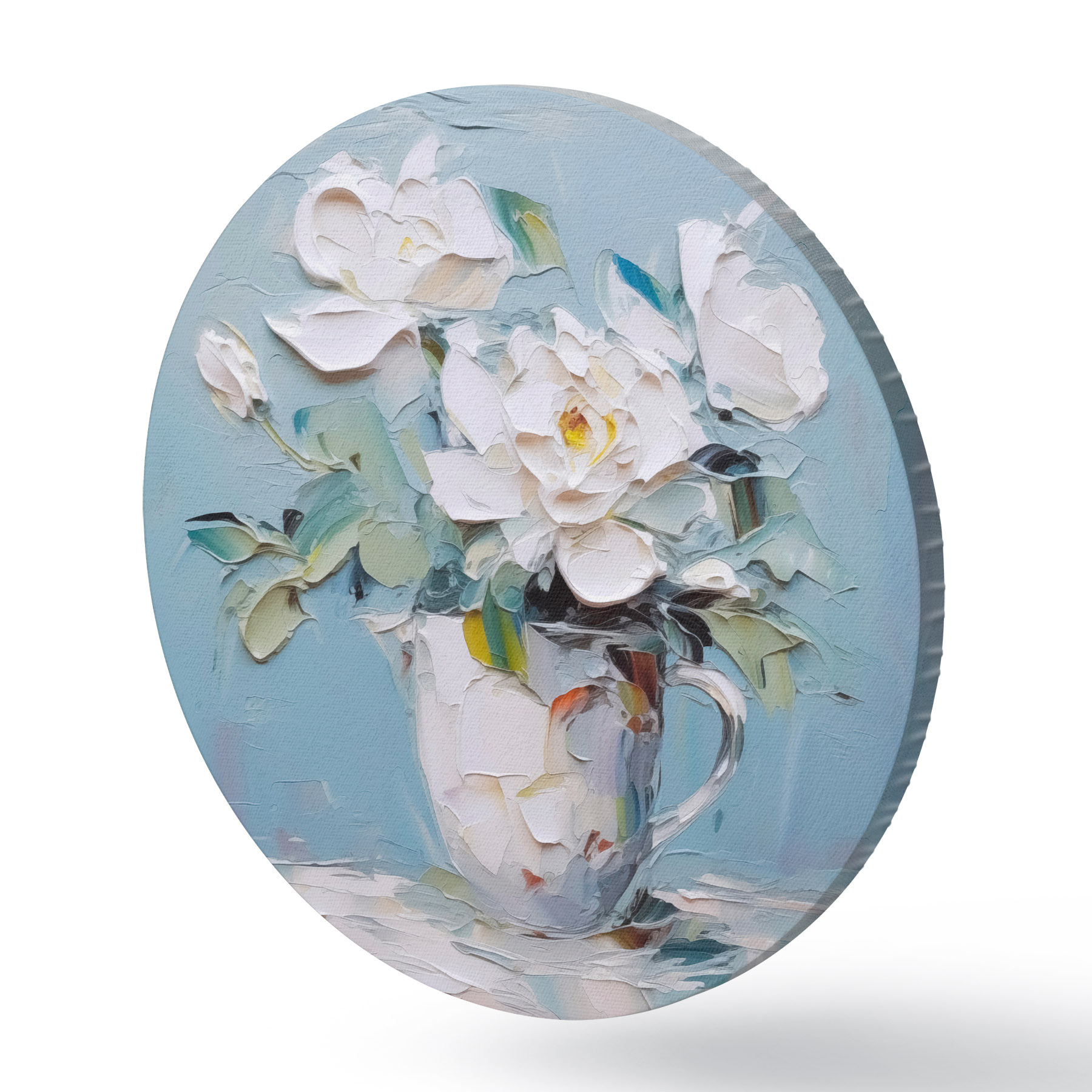 Quadri rotondi Fiori bianchi in tazza imitazione pittura r43225