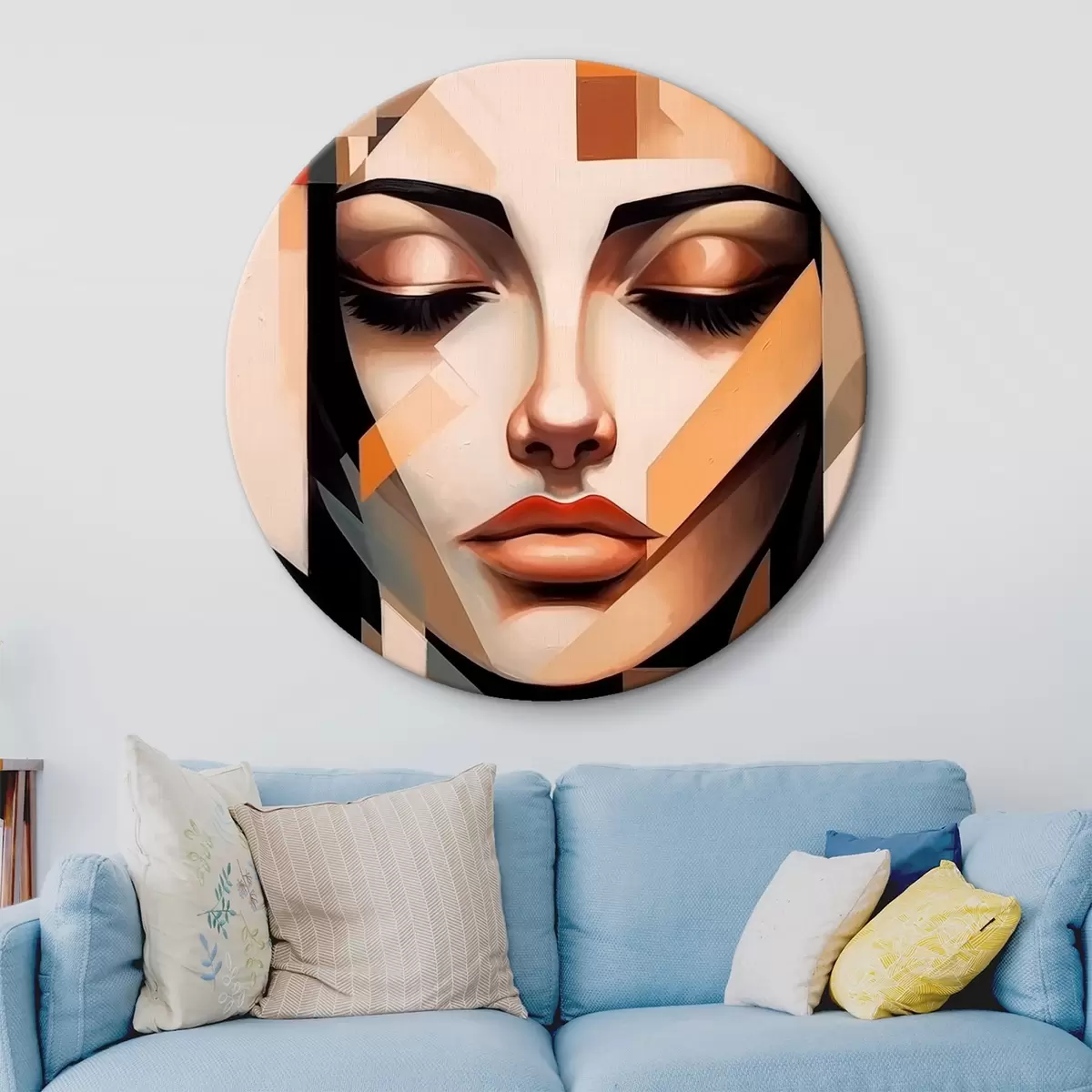 Quadri rotondi Ritratto geometrico in colori caldi r43281