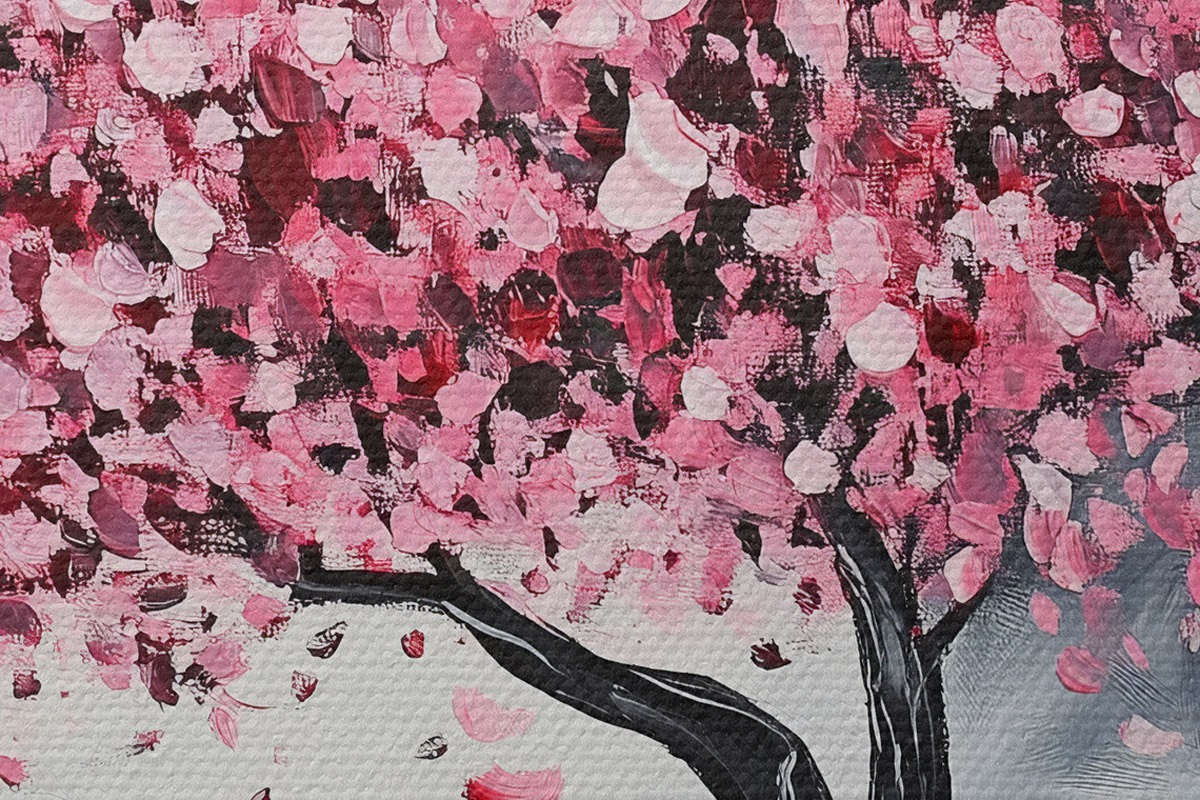 Immagine Albero fiorito rosa su sfondo grigio Nr r43299