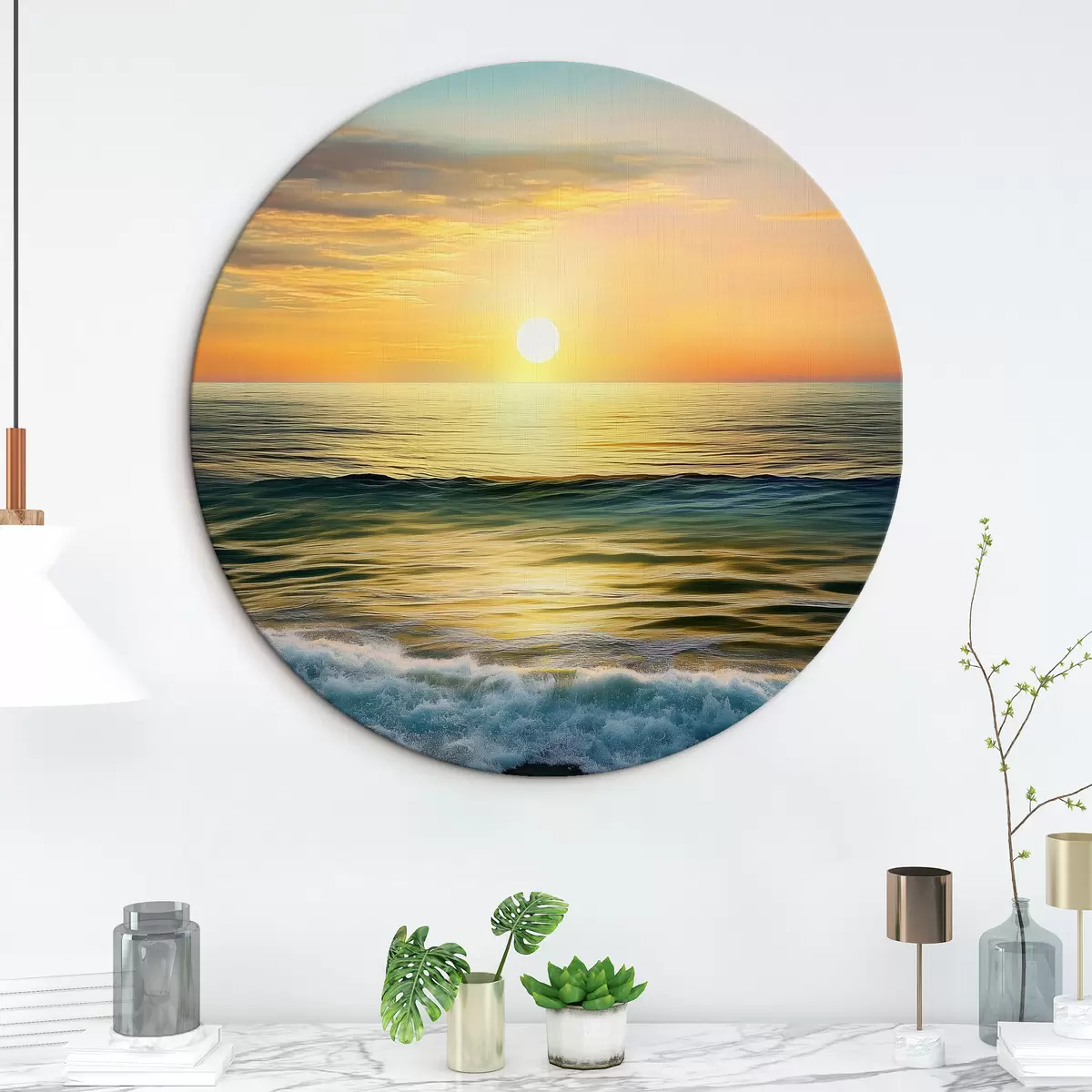 Quadri rotondi L'alba sul mare r43308