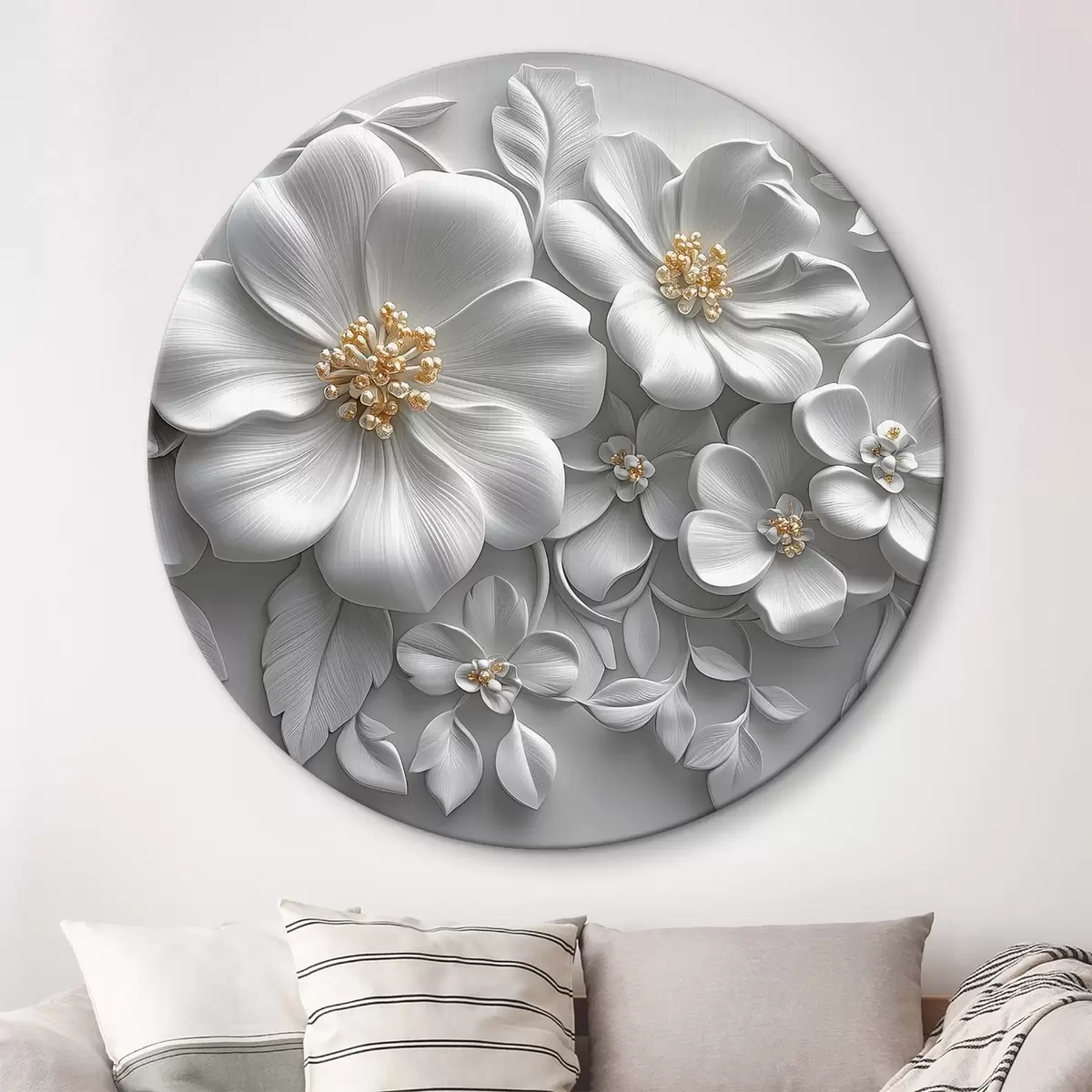 Quadri rotondi fiori 3d grigi con accento giallo r43310