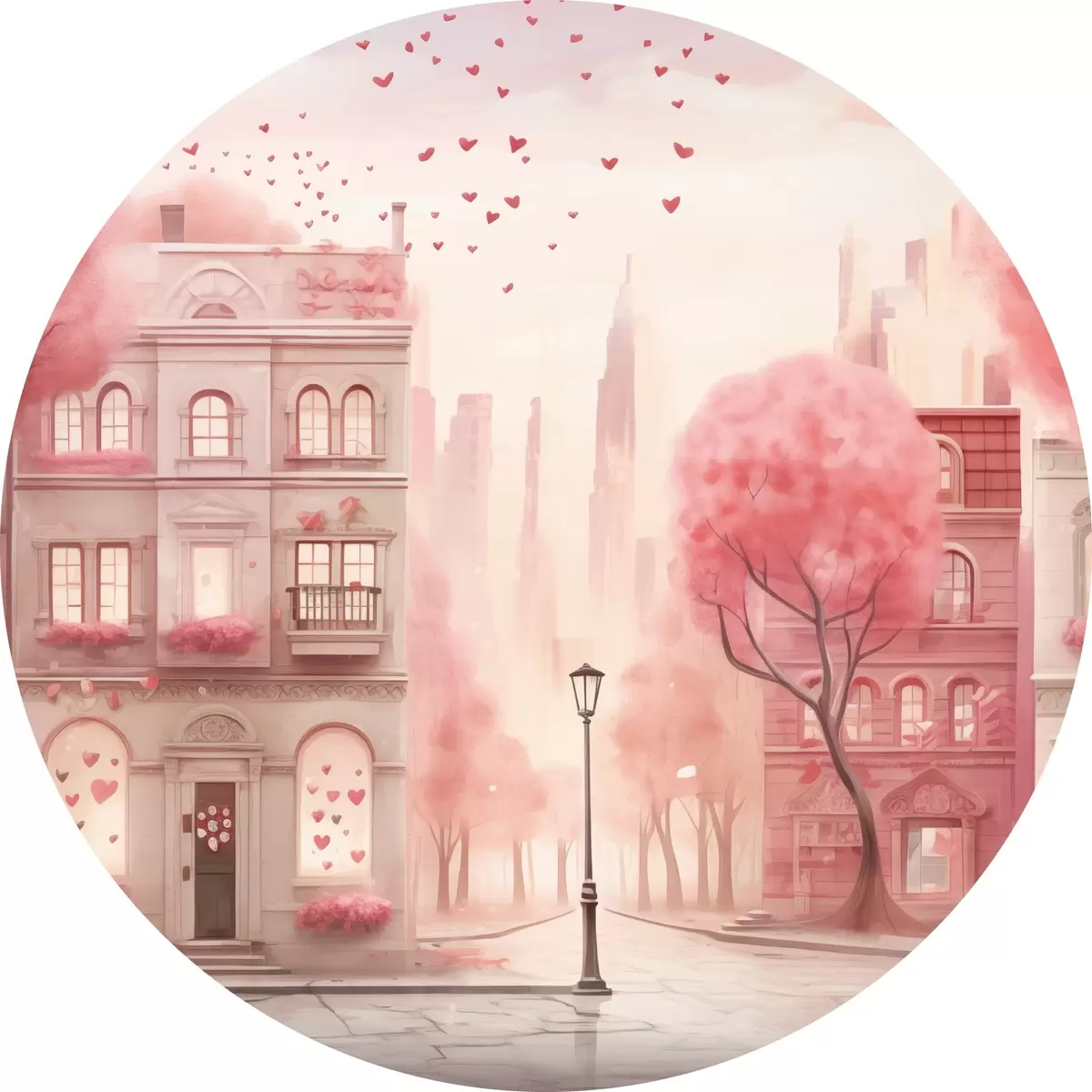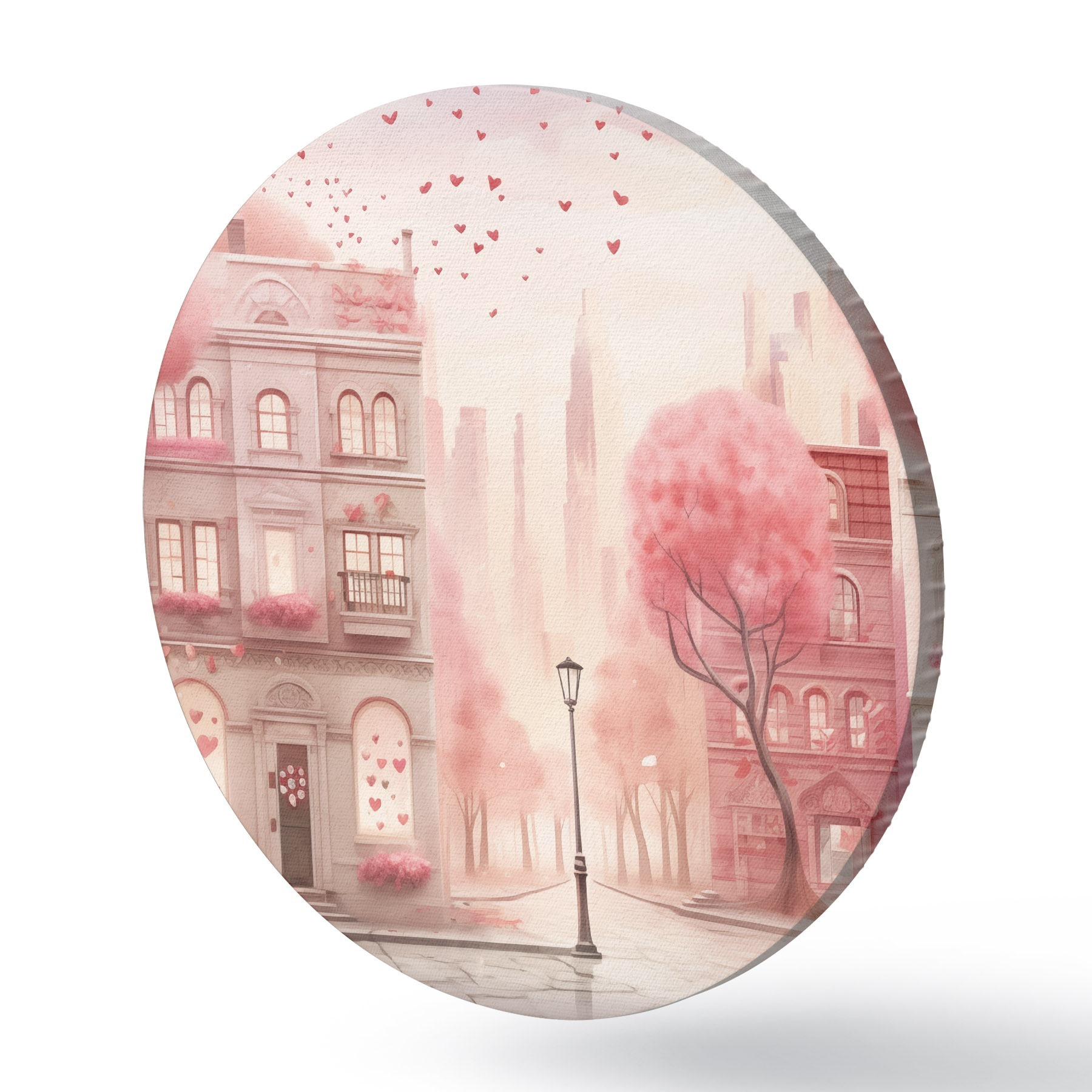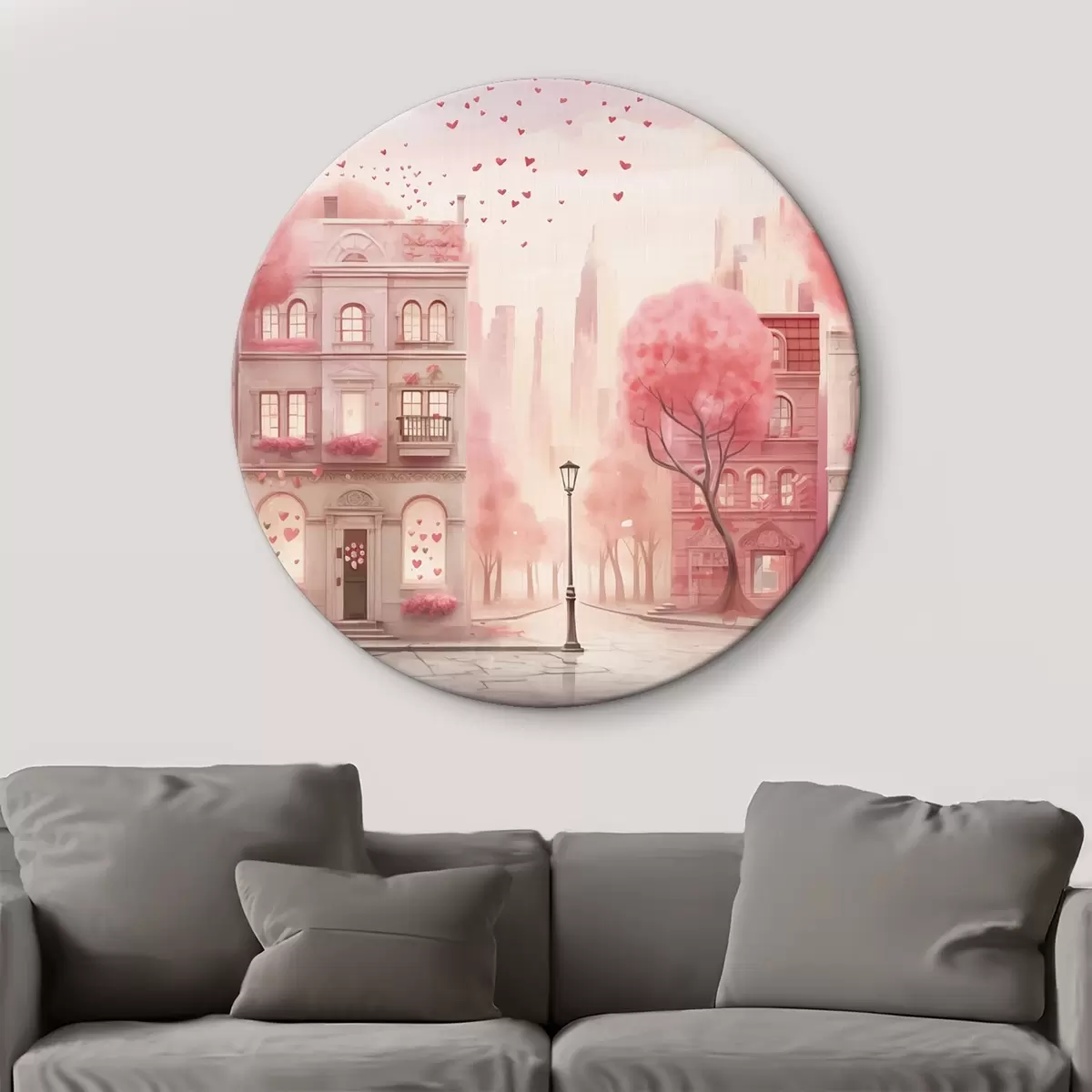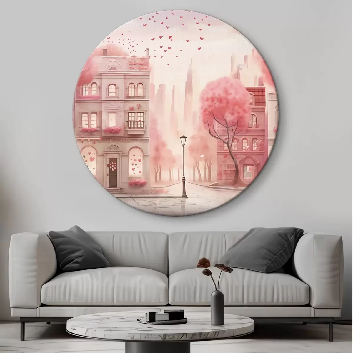 Quadri rotondi Romantica strada rosa con cuori r43324