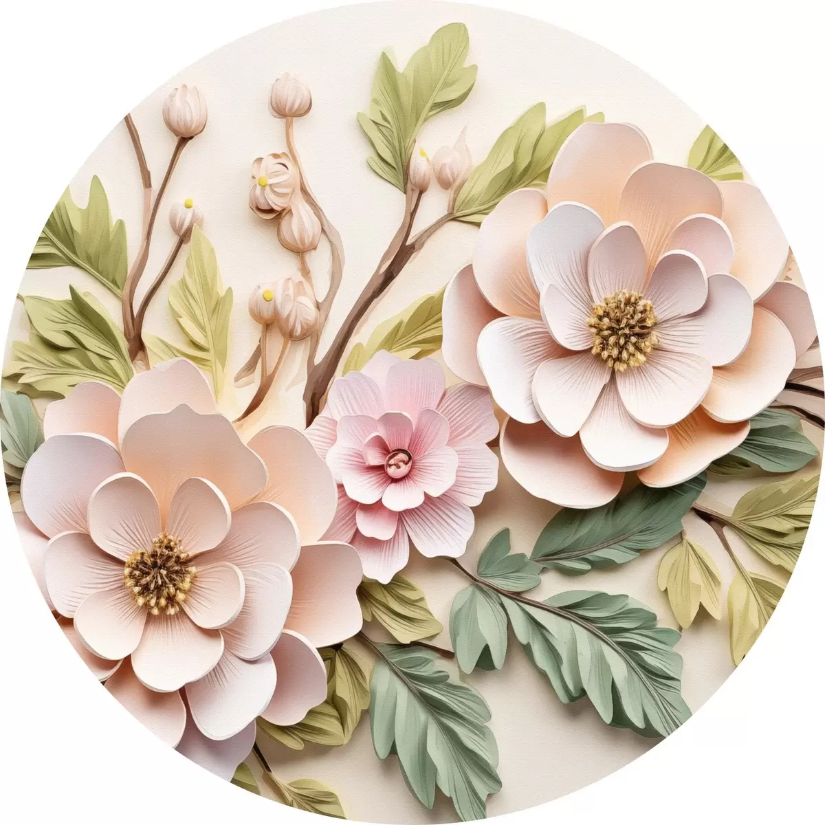 Quadri rotondi Grandi rami di fiori, imitazione di modanatura r43333