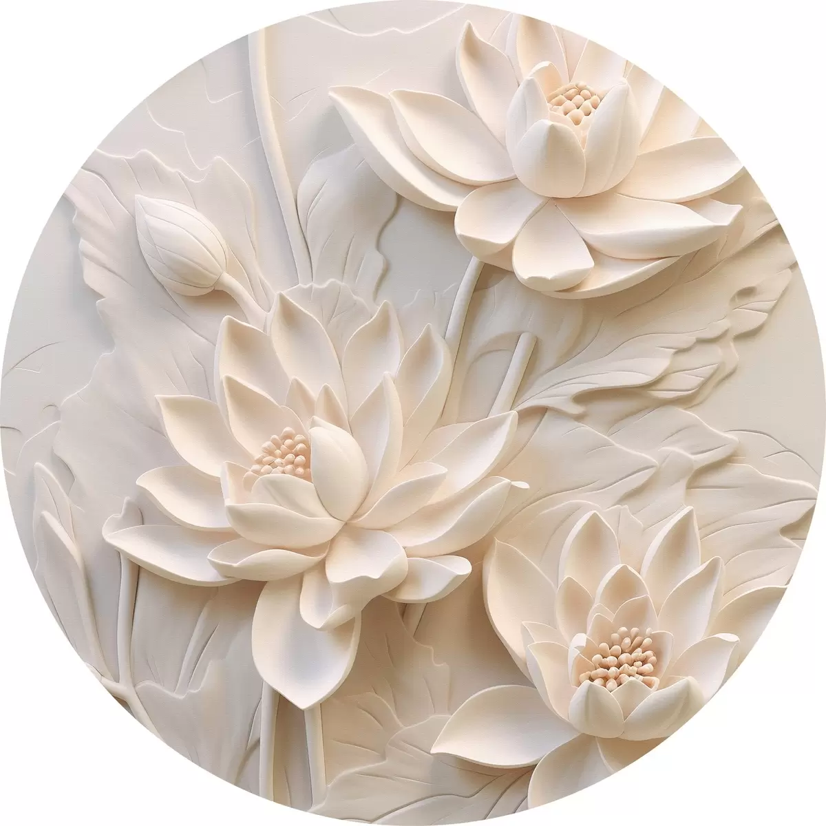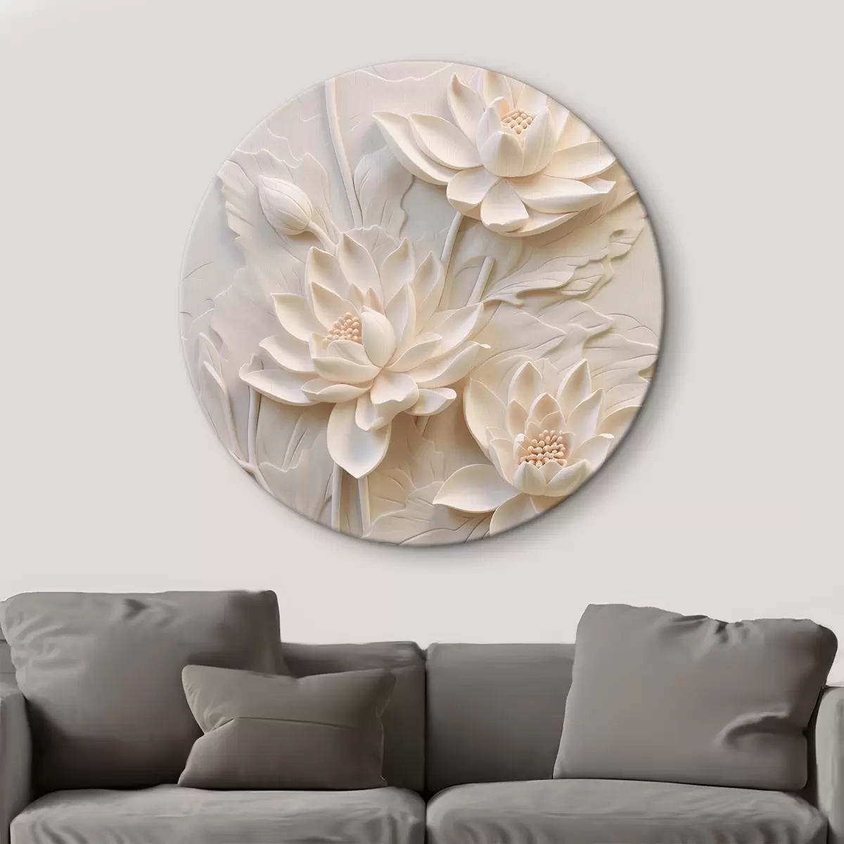 Quadri rotondi Modanatura bianca, imitazione, fiori r43334