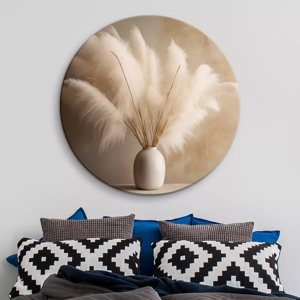 Quadri rotondi Soffici rami di canne in un vaso sul tavolo r43338