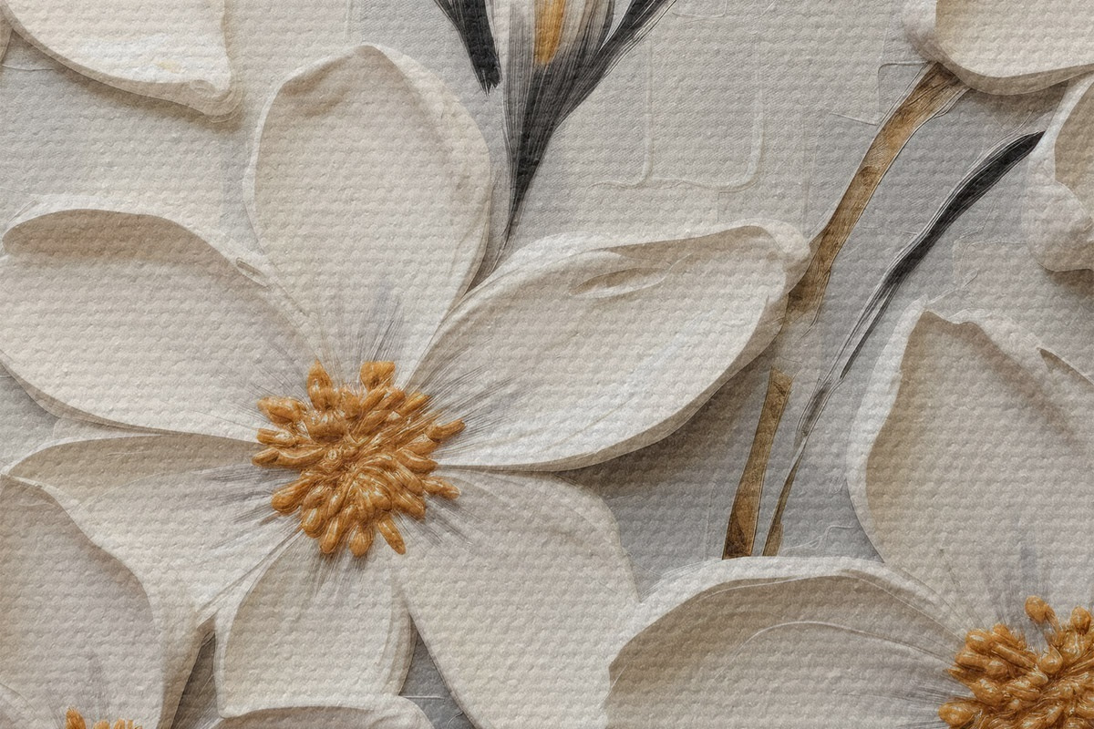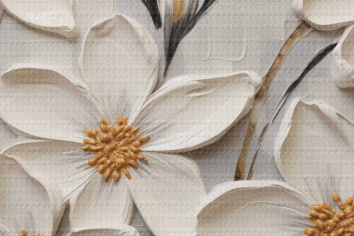 Immagine Fiori bianchi voluminosi in stile pittura con grandi pennellate Nr r43366