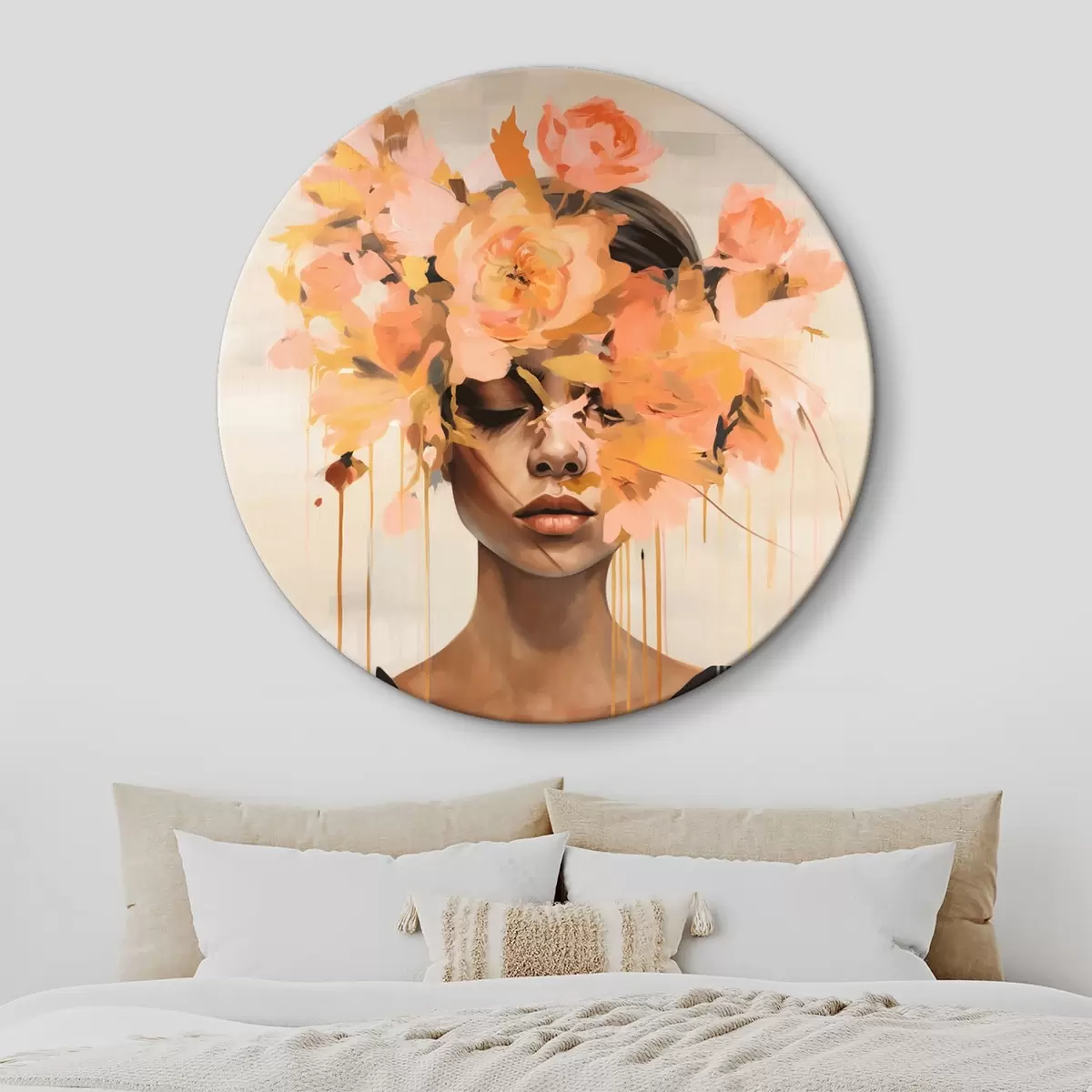 Quadri rotondi Ragazza con pittura sul viso e fiori in testa r43382