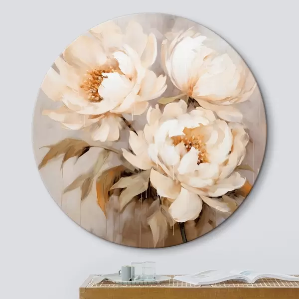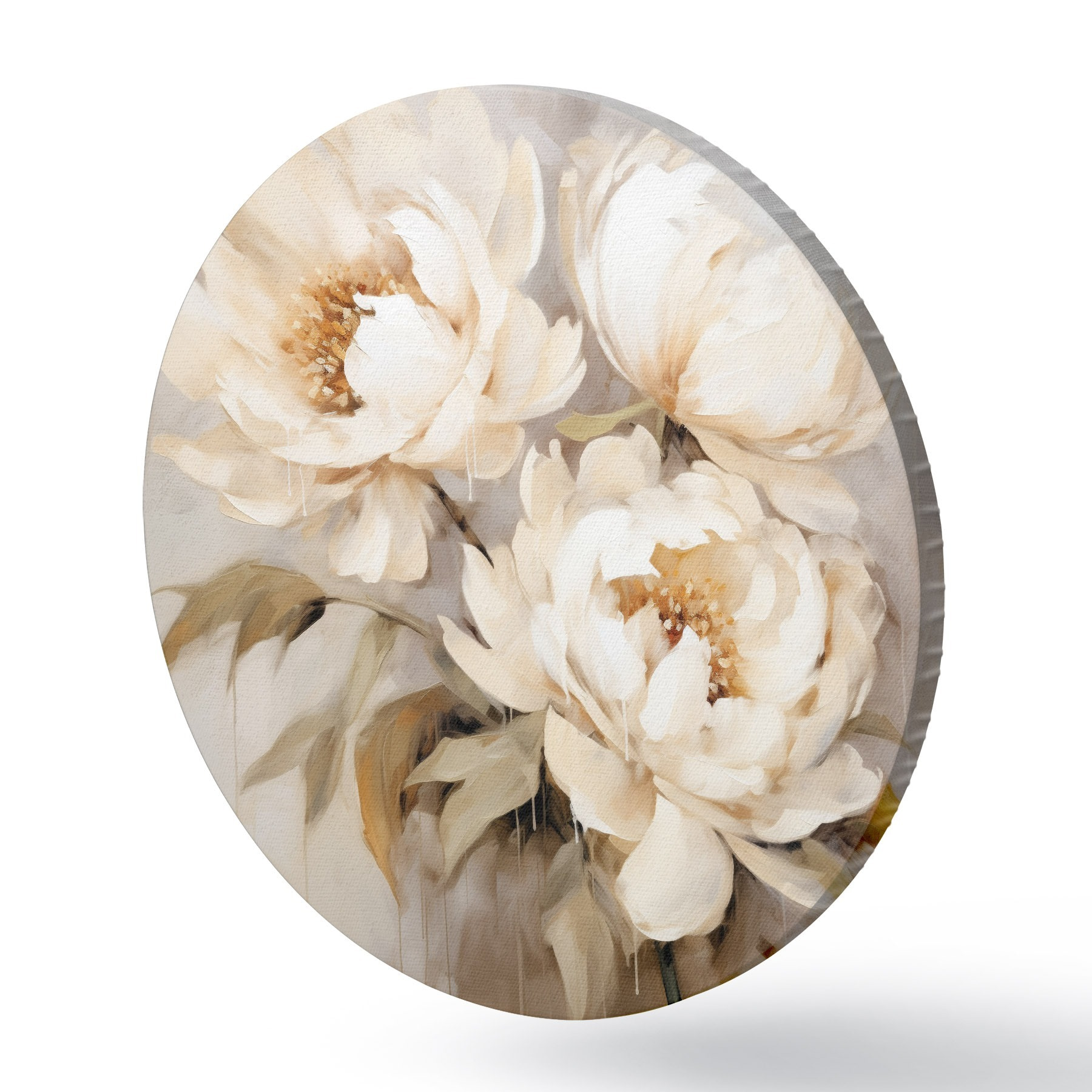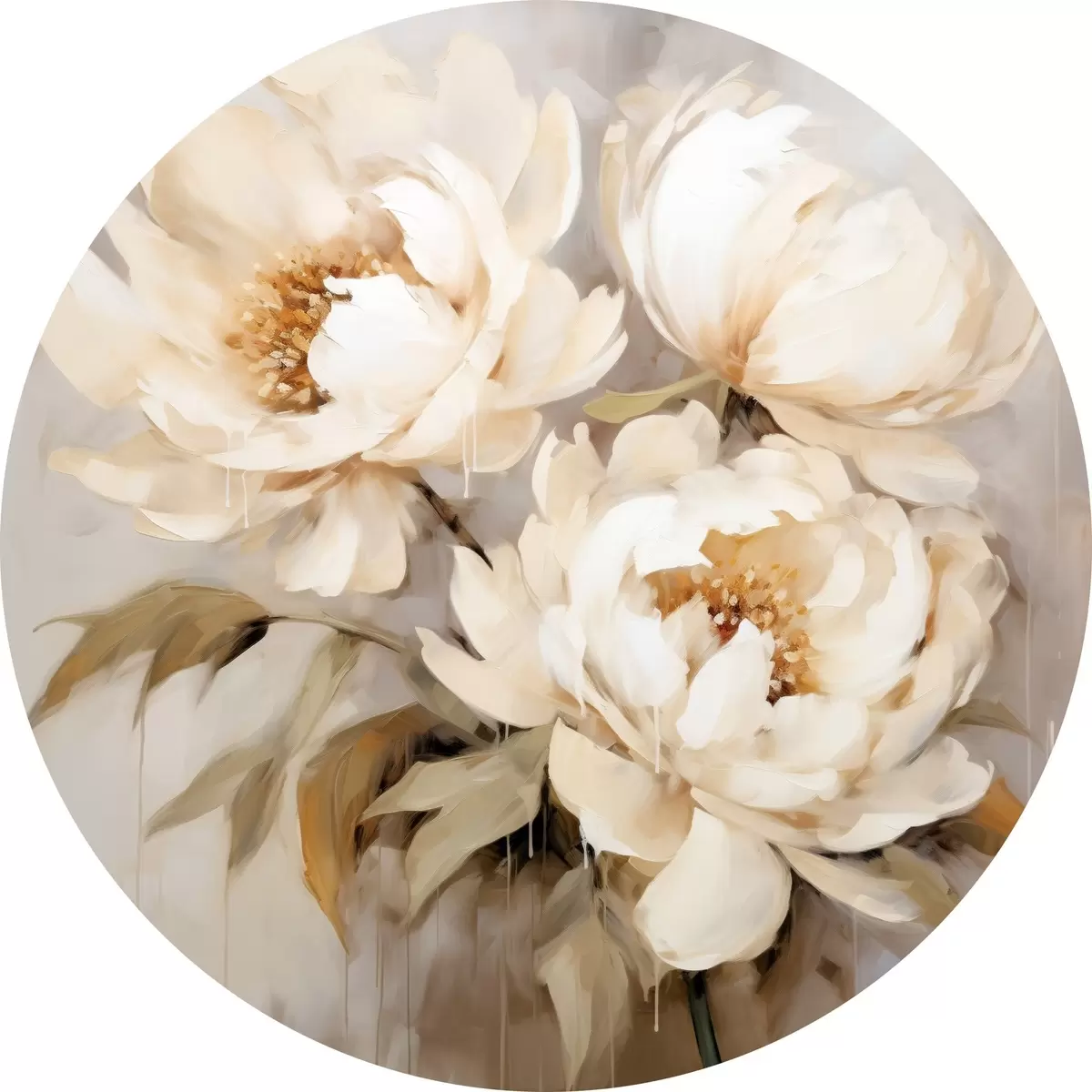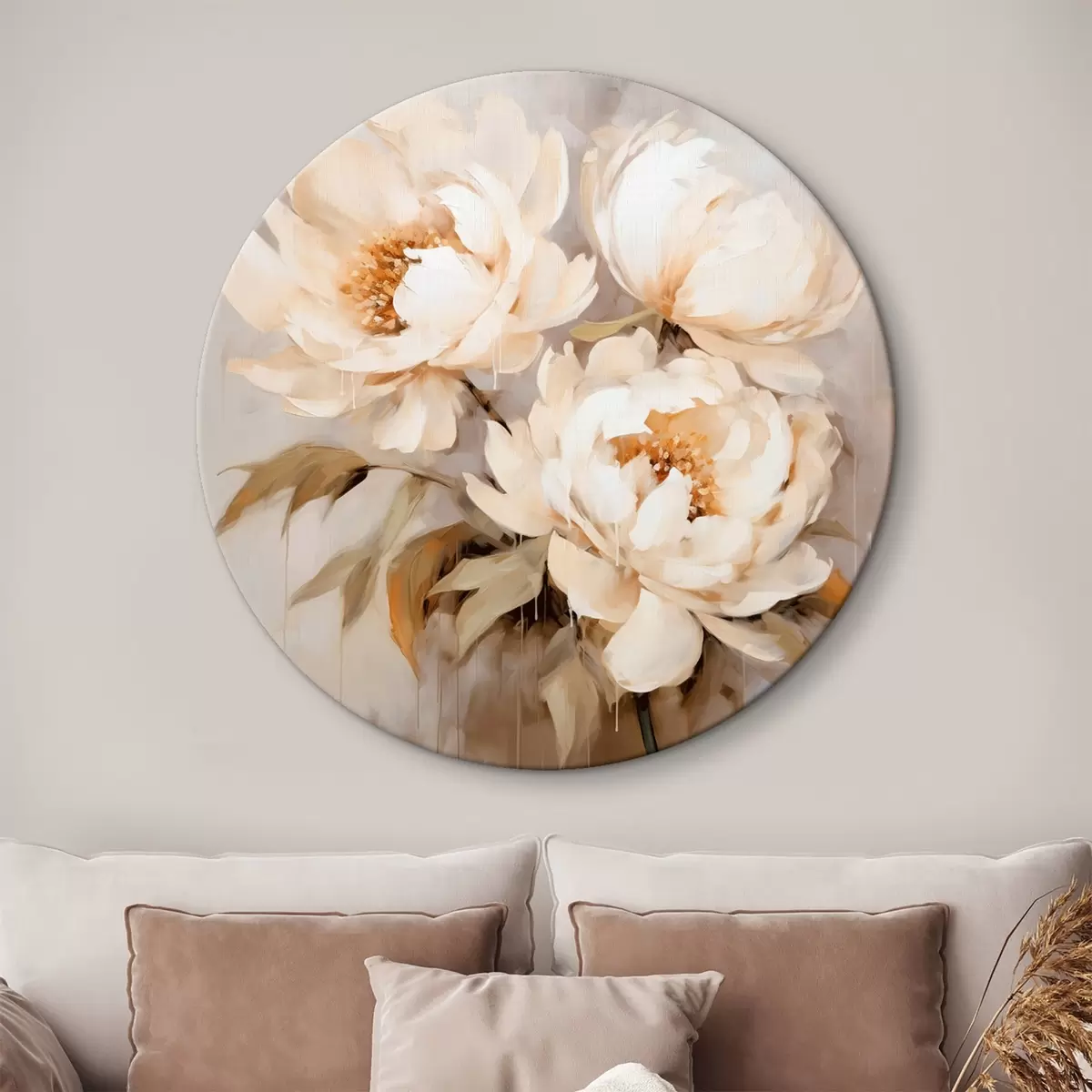 Quadri rotondi Delicate peonie in toni neutri in stile pittura astratta r43387