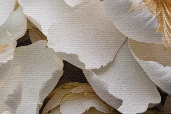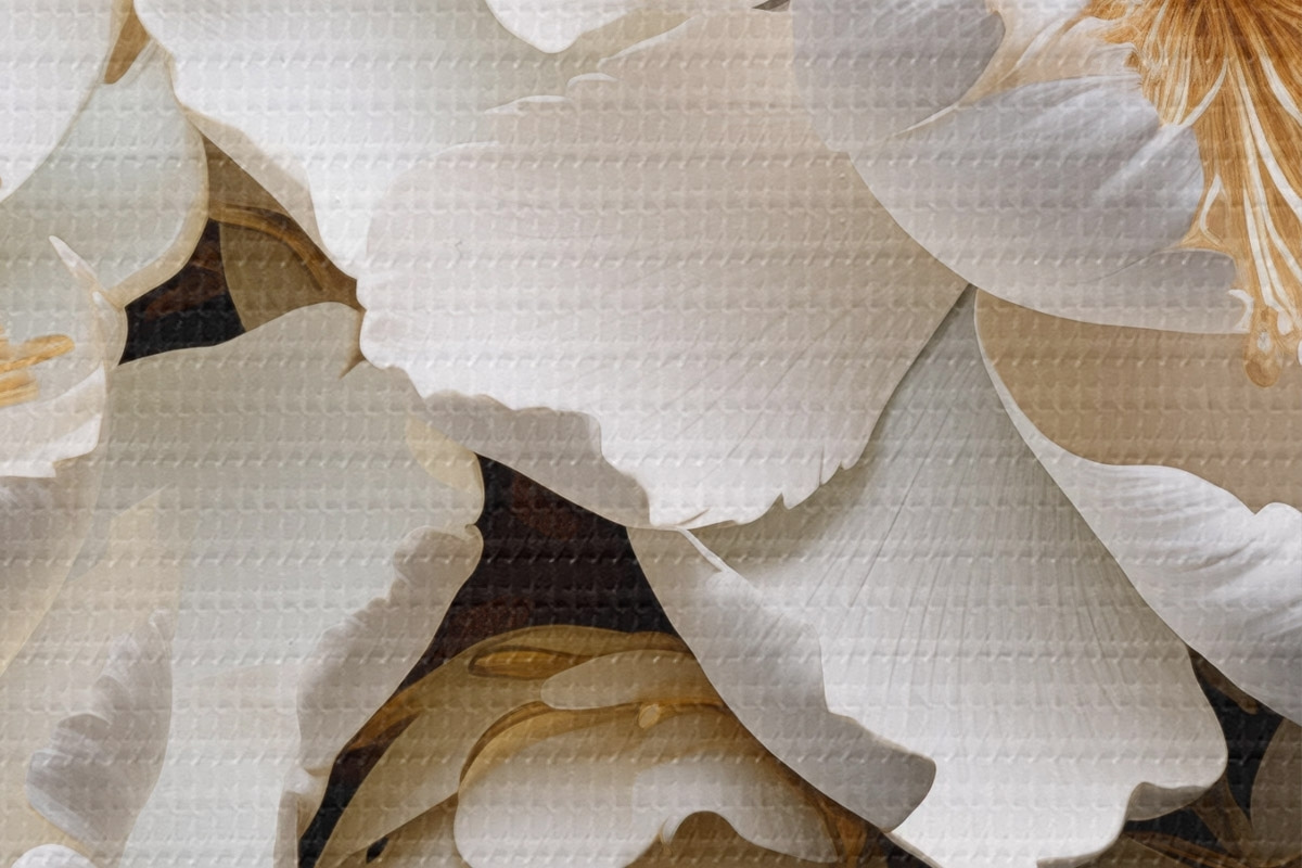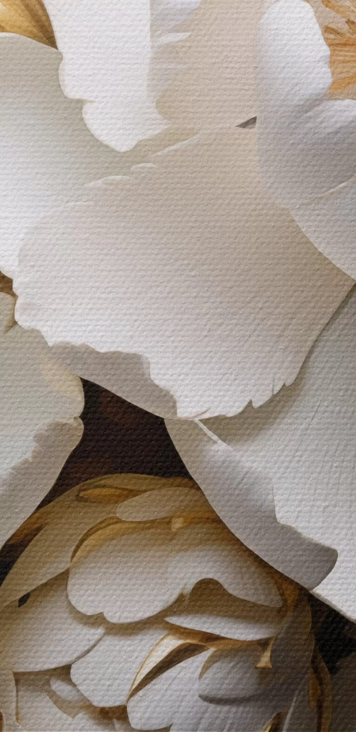 Immagine Peonie bianche e gialle con foglie, dettagli intricati, arte decorativa, sfondo scuro Nr r43399