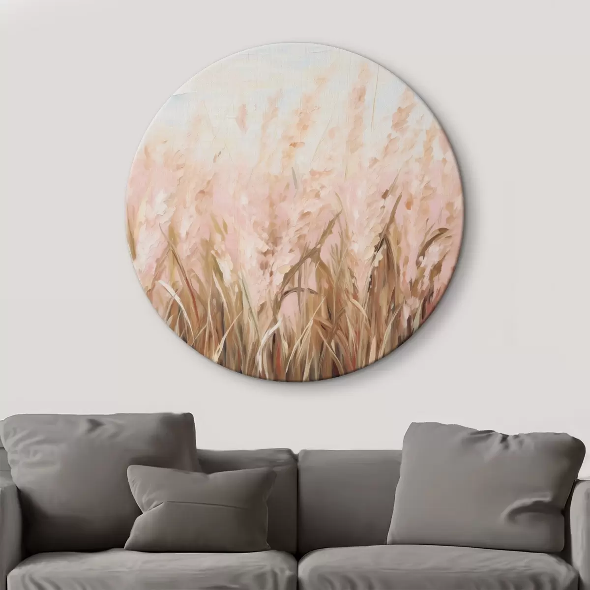 Quadri rotondi Campo di erba della pampa con toni rosa e marroni, pennellate morbide, imitazione astratta di pittura ad olio r43403