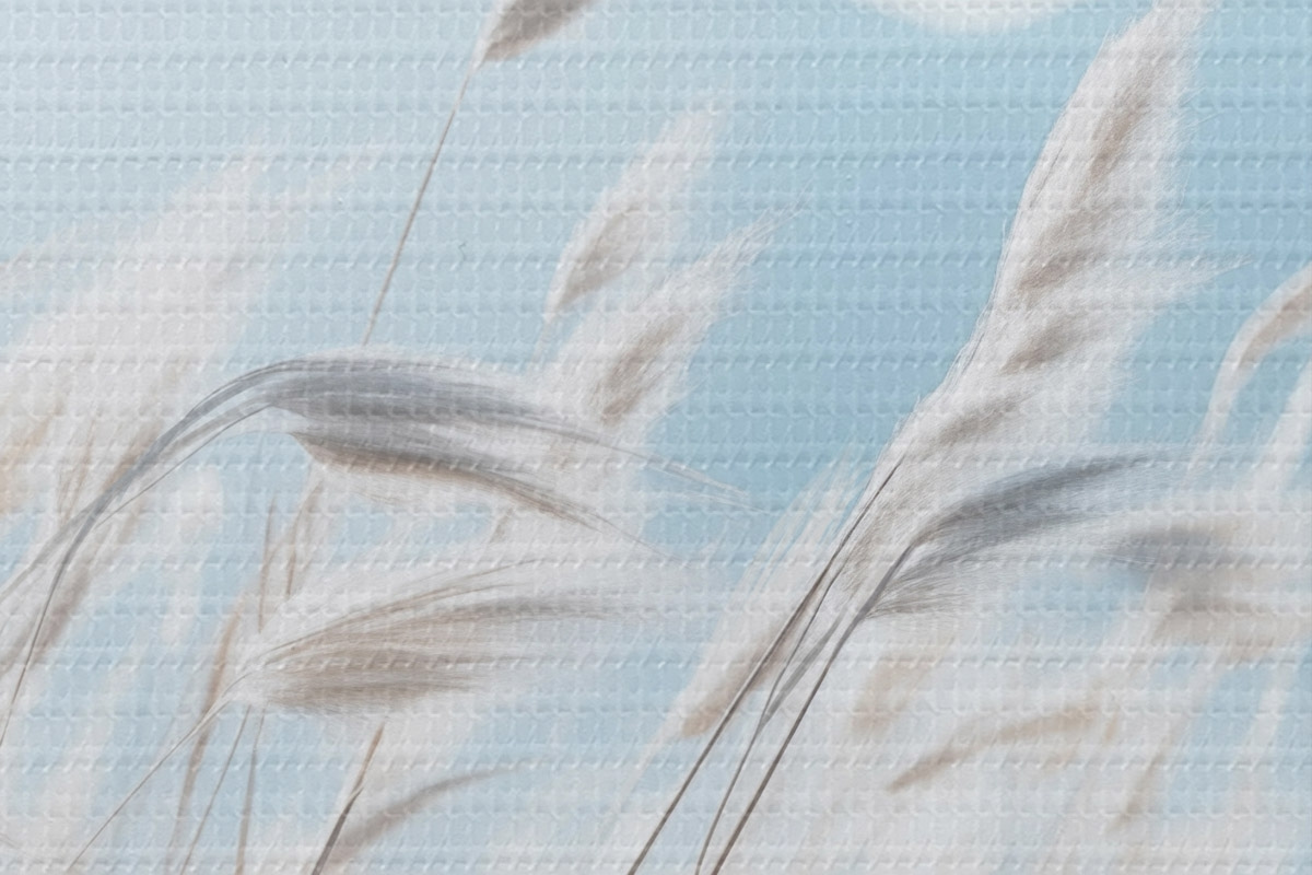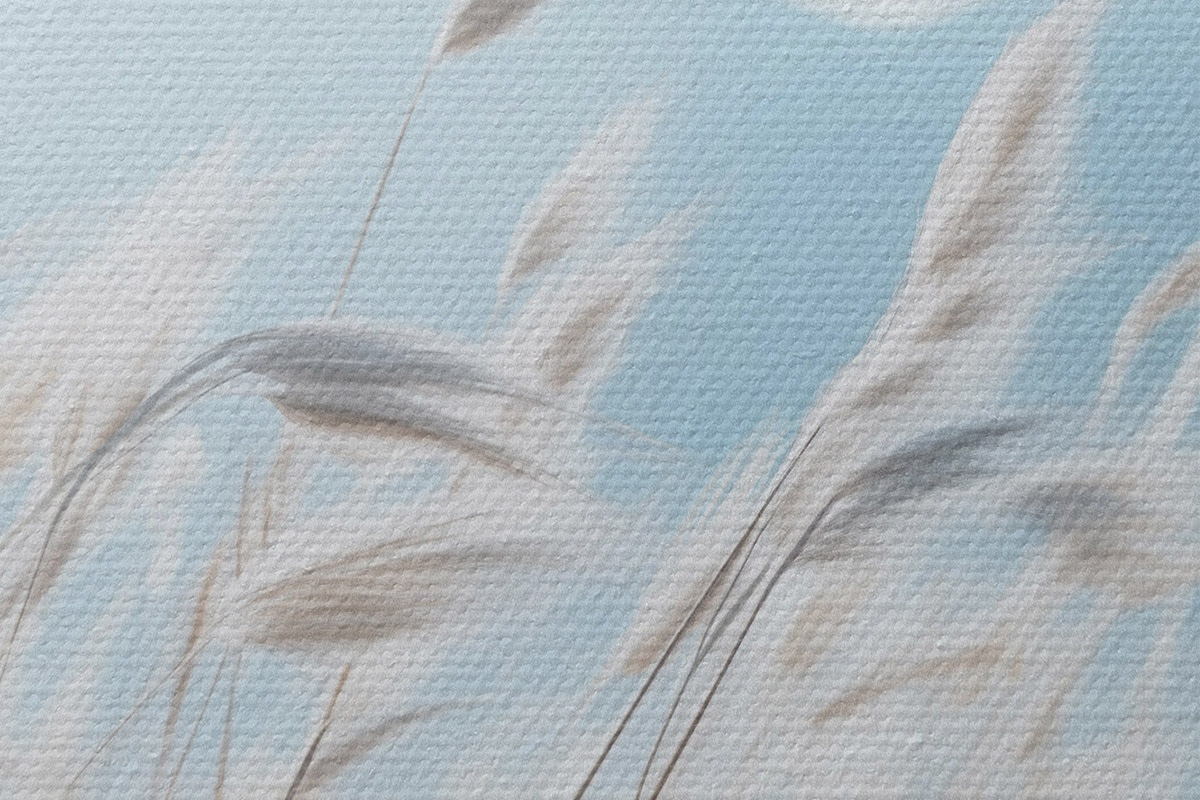Immagine Erba, campo di pampa con una montagna blu sullo sfondo, cielo azzurro, minimalista, colori pastello Nr r43404