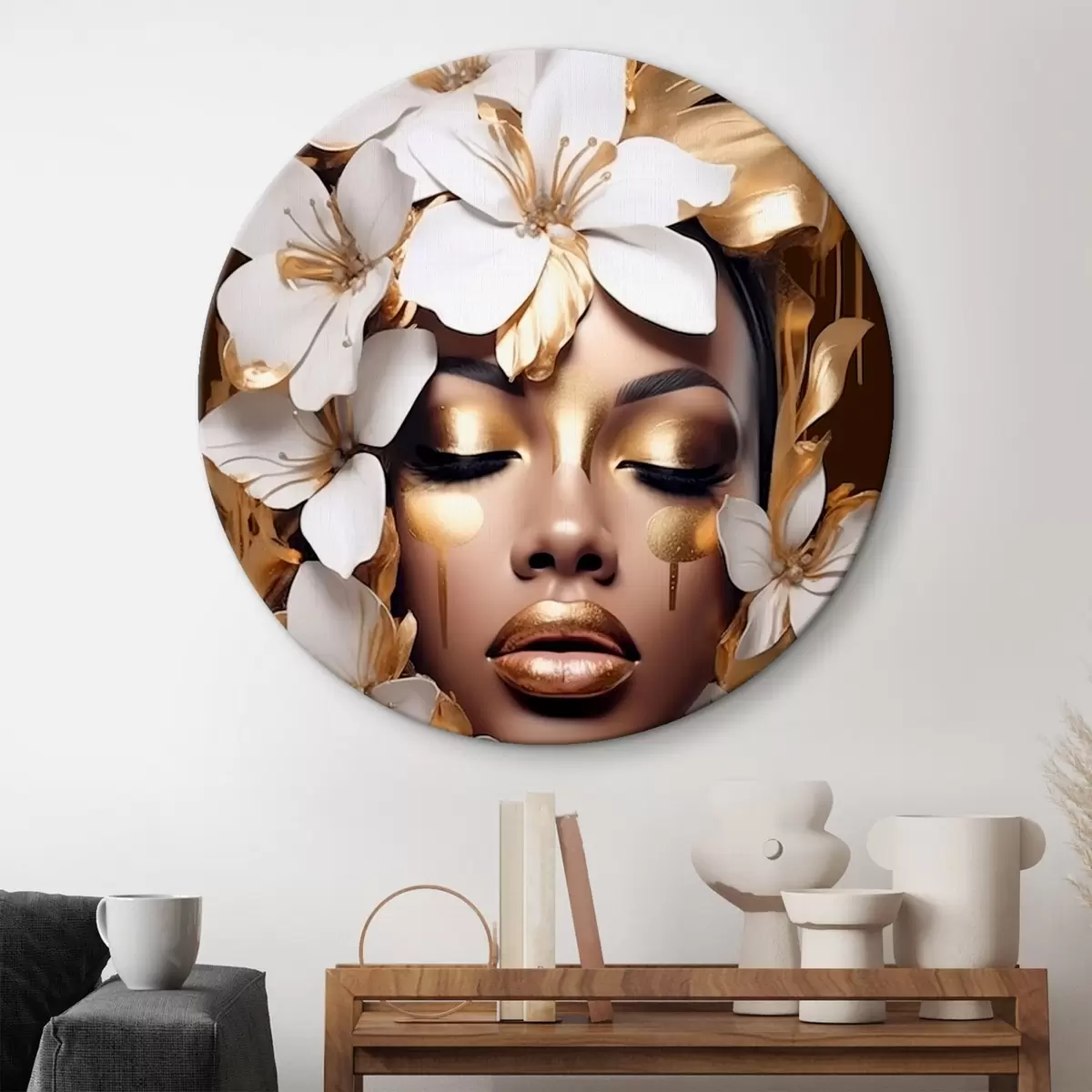 Quadri rotondi Ritratto femminile con elementi floreali r43417