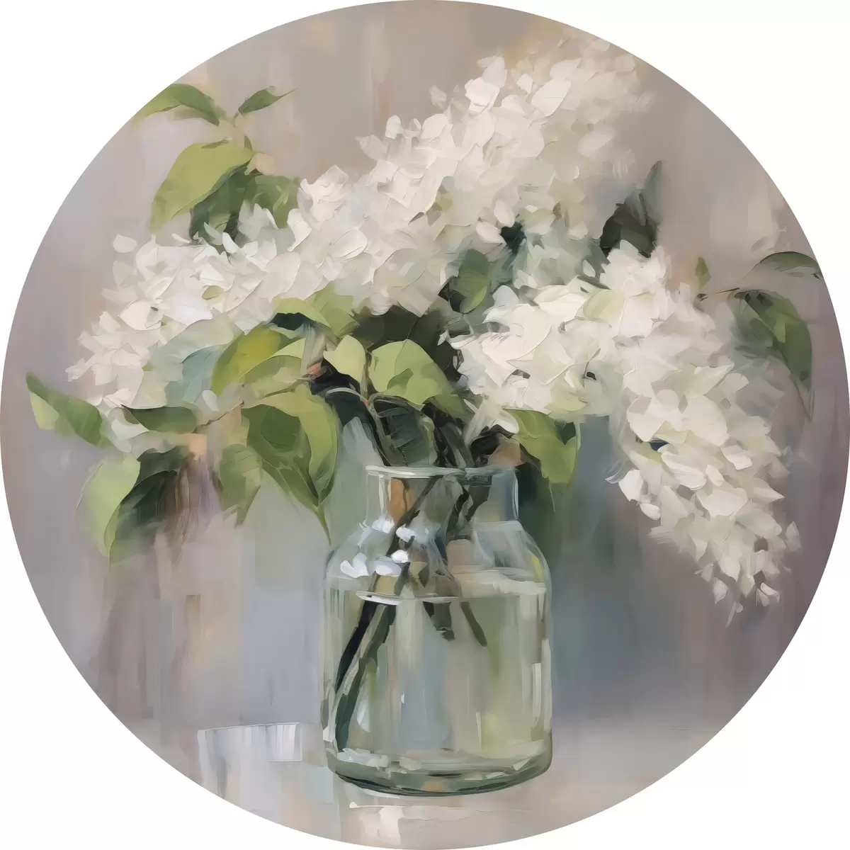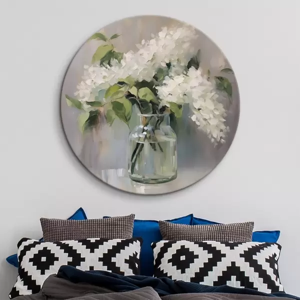 Quadri rotondi Lillà bianco in vaso imitazione di un quadro r43439