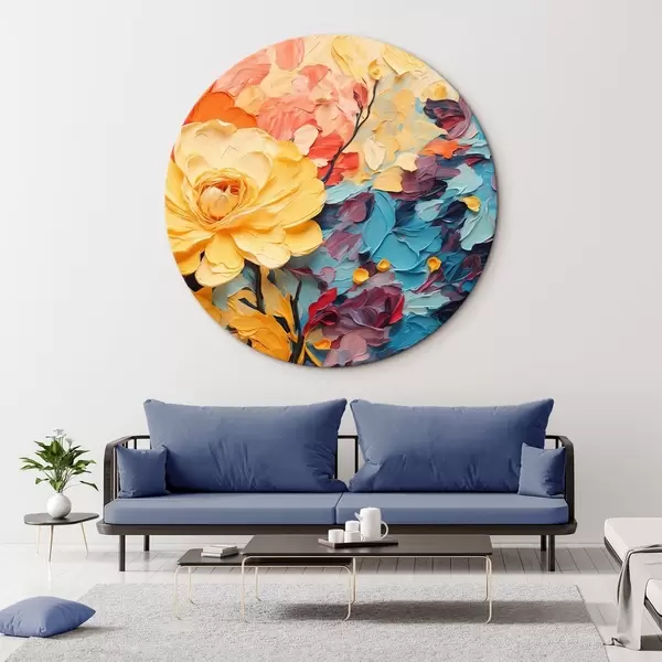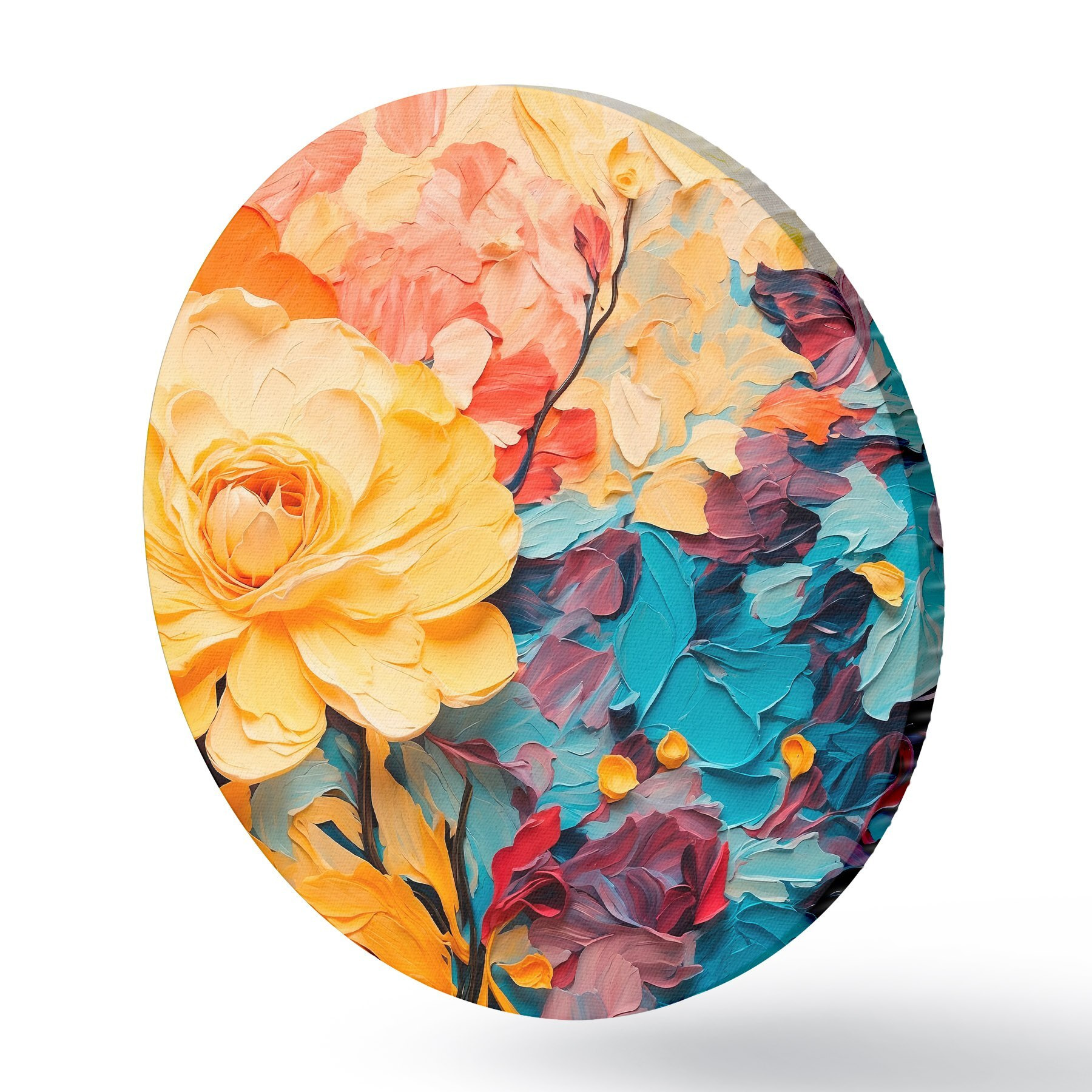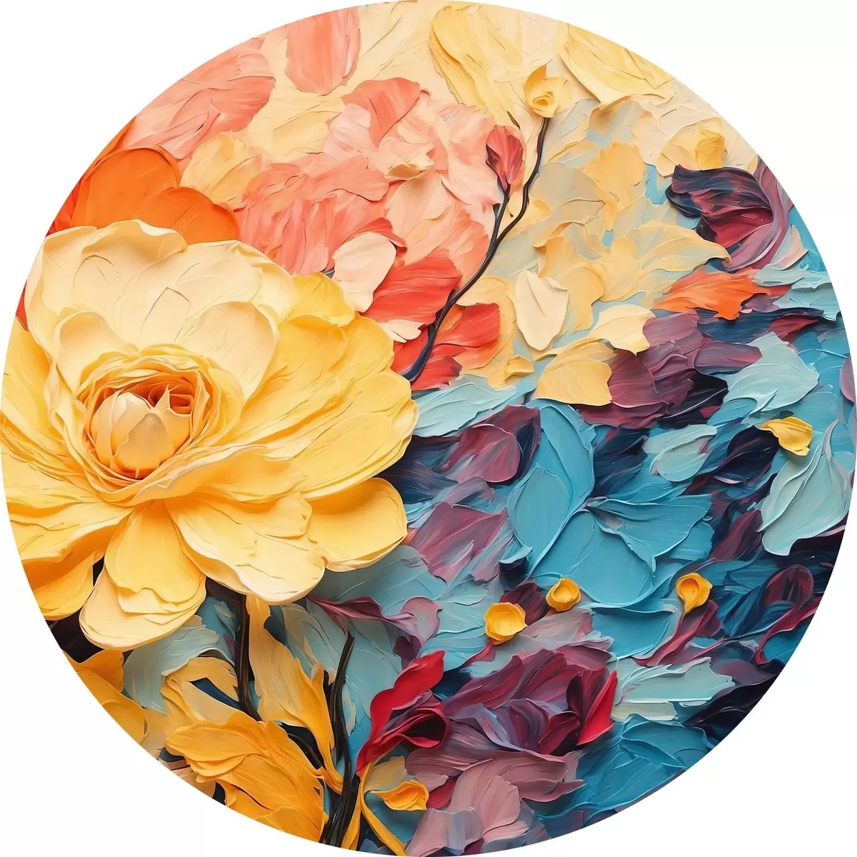 Quadri rotondi Fiori su sfondo astratto in stile pittura ad olio r43442