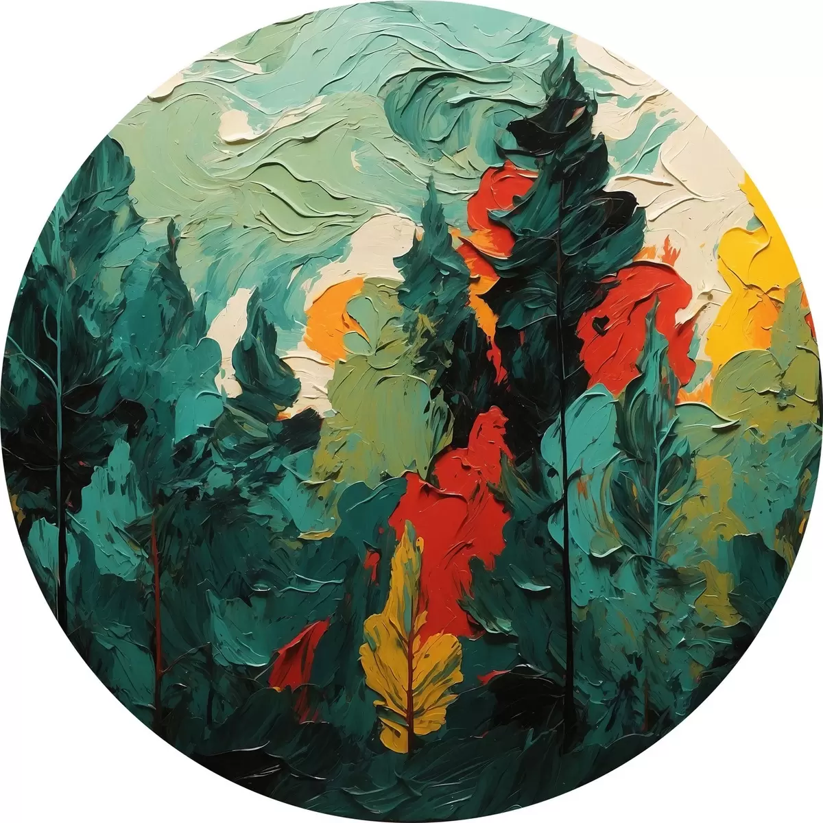 Quadri rotondi Foresta nera in stile pittura ad olio r43444