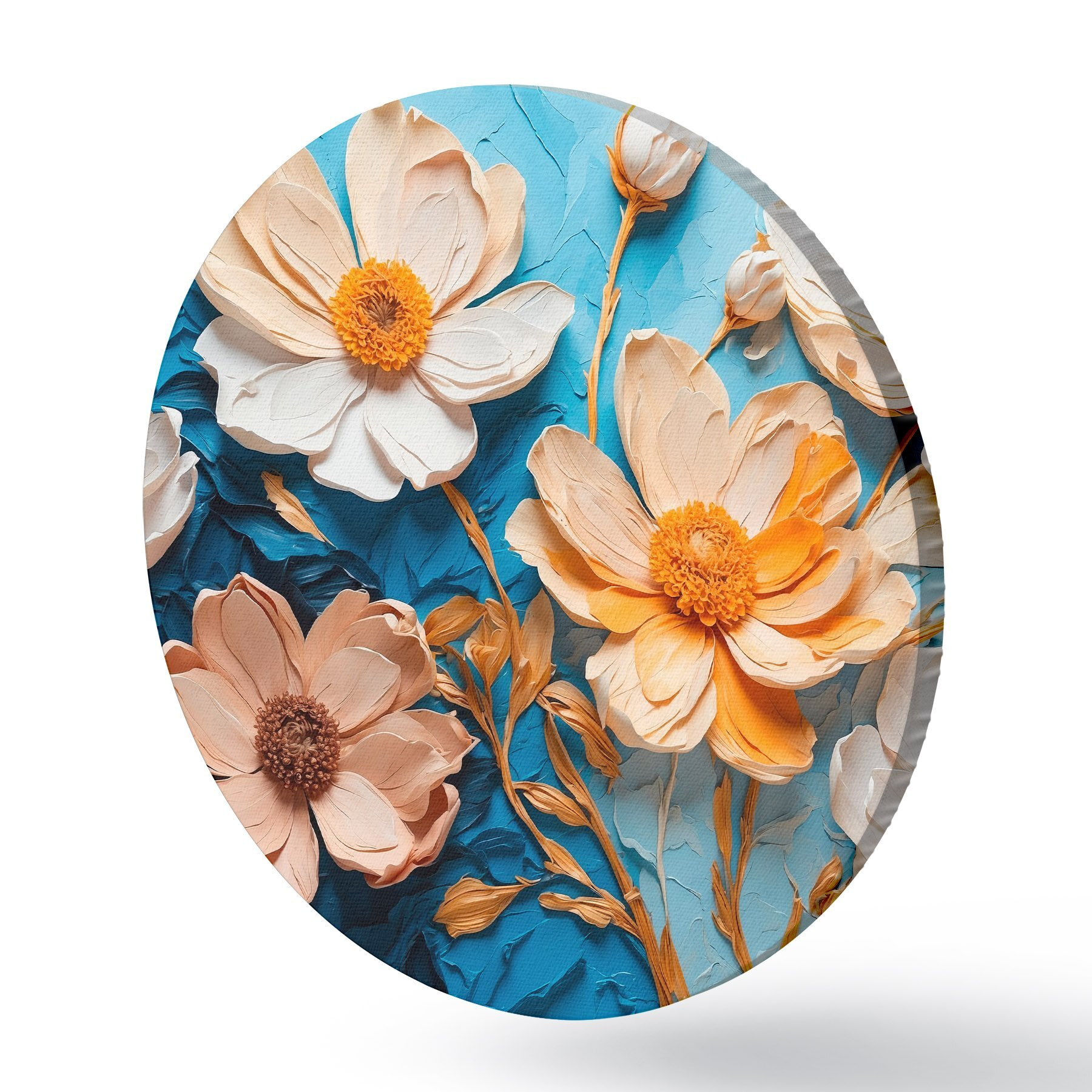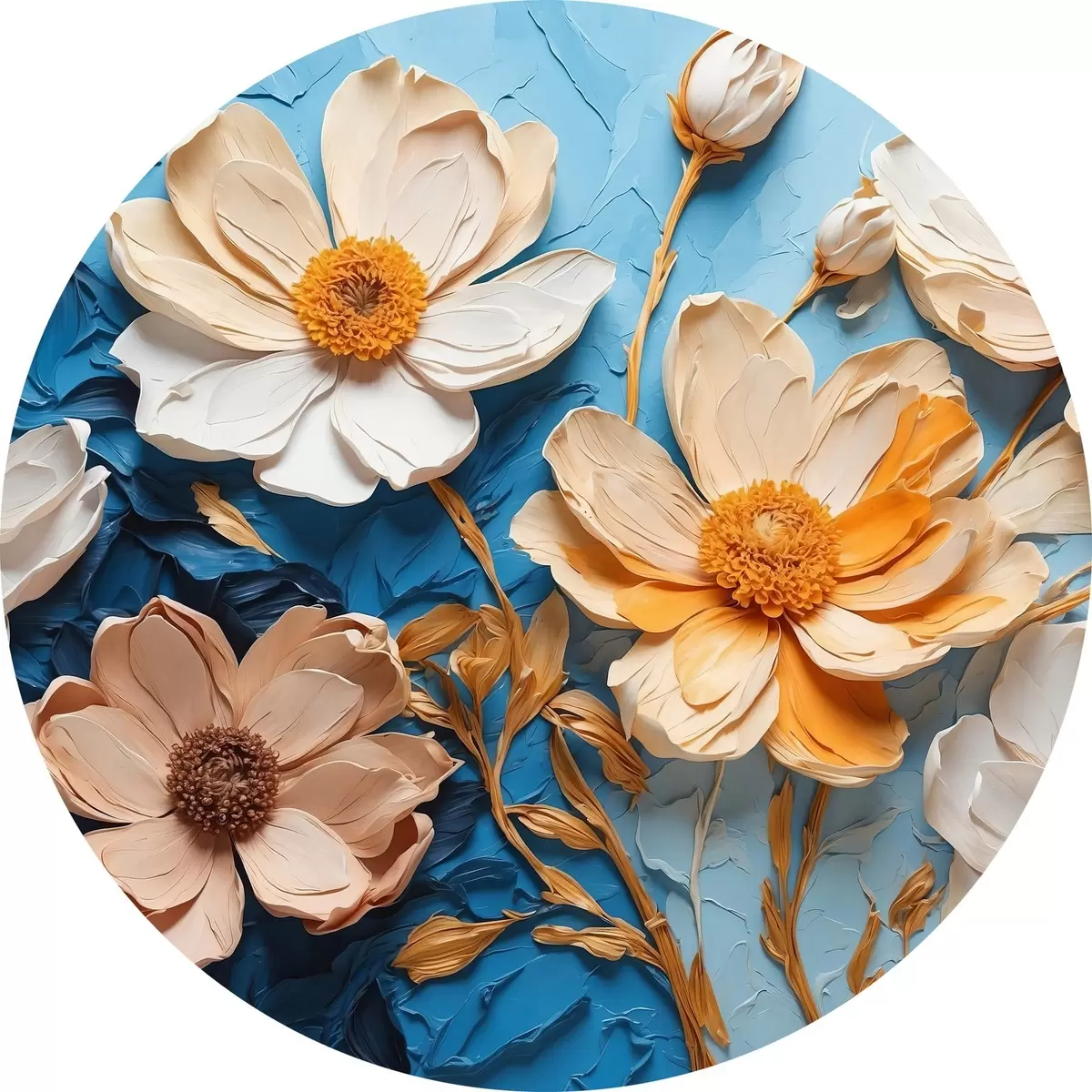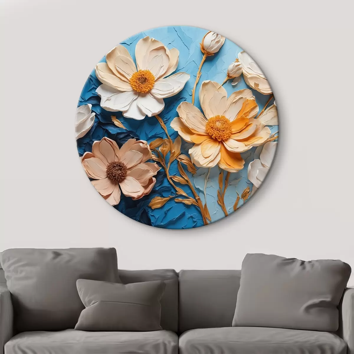 Quadri rotondi Fiori bianchi su sfondo blu r43446