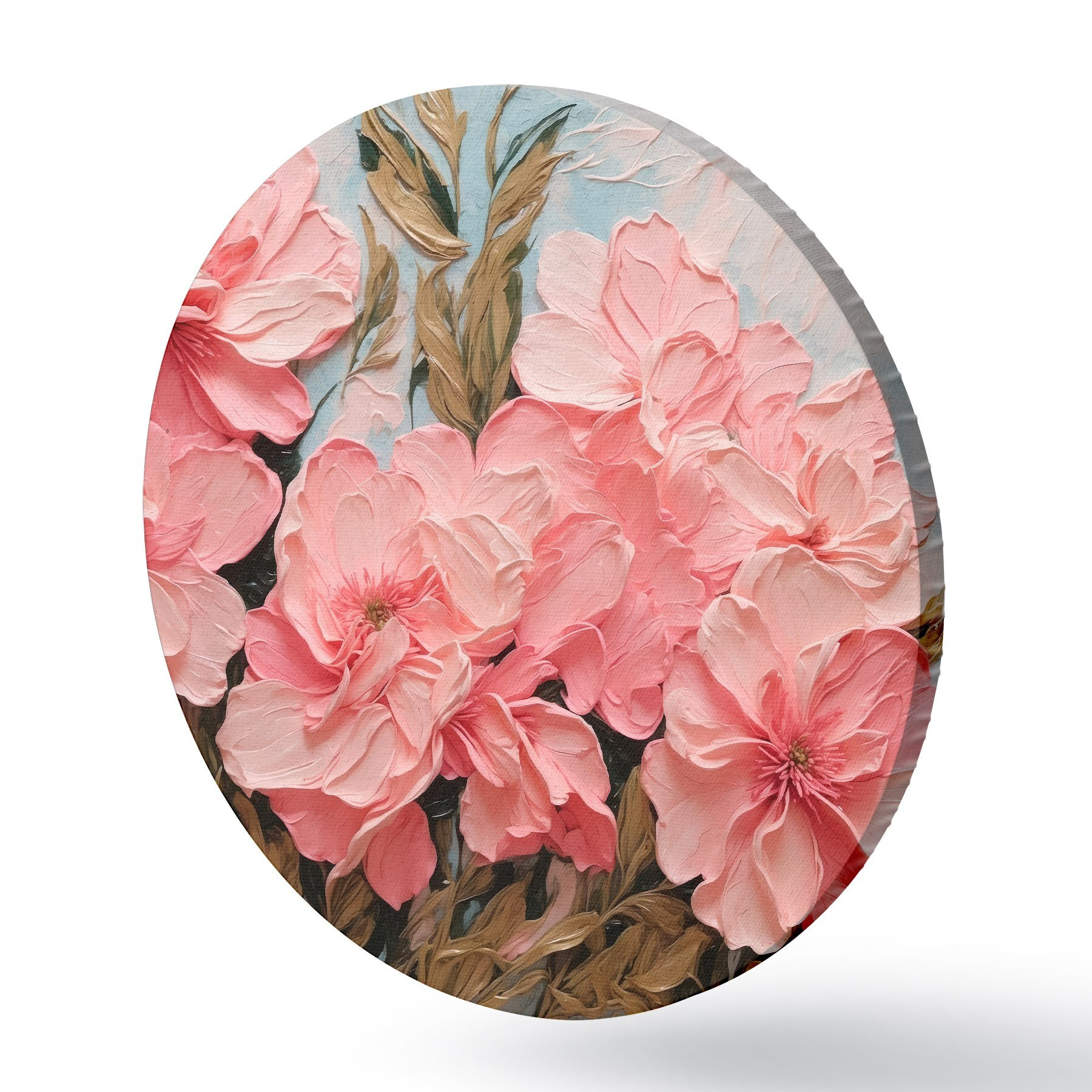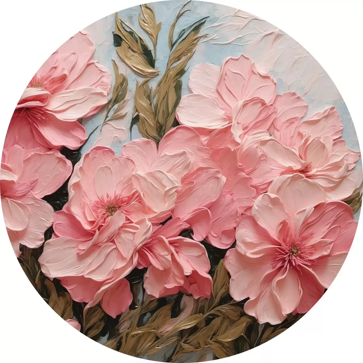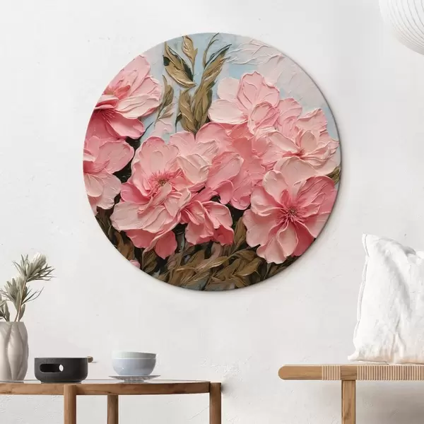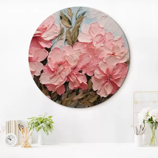 Quadri rotondi Fiori e foglie rosa in stile pittura ad olio r43453
