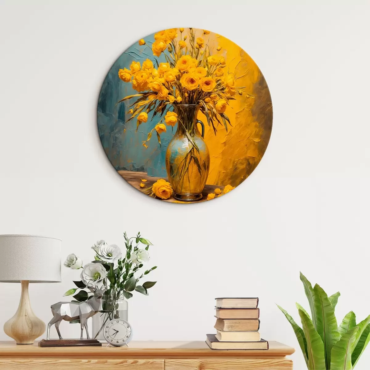 Quadri rotondi Fiori gialli in vaso su un tavolo r43462
