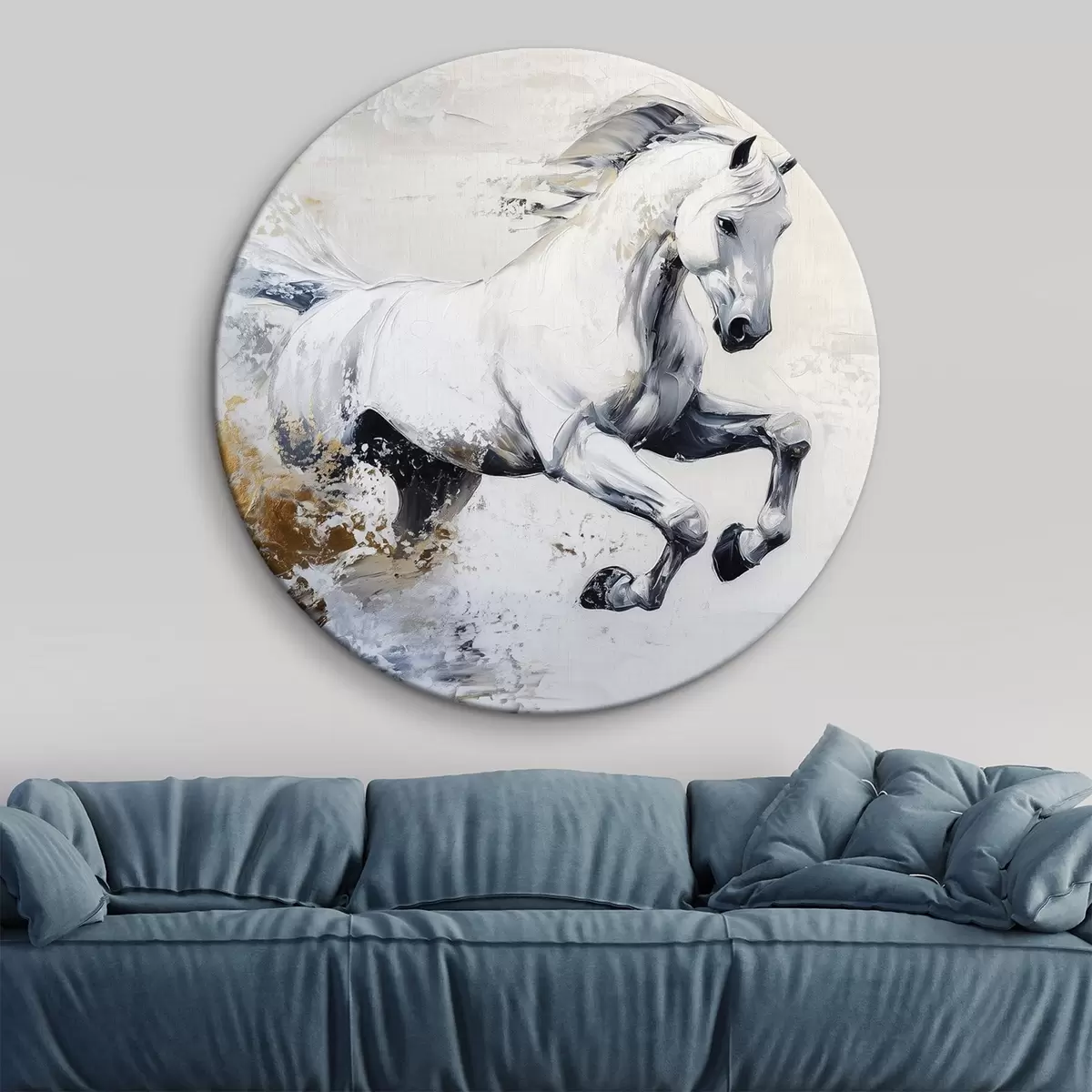 Quadri rotondi Cavallo bianco in corsa, disegno ad olio, animali r43498