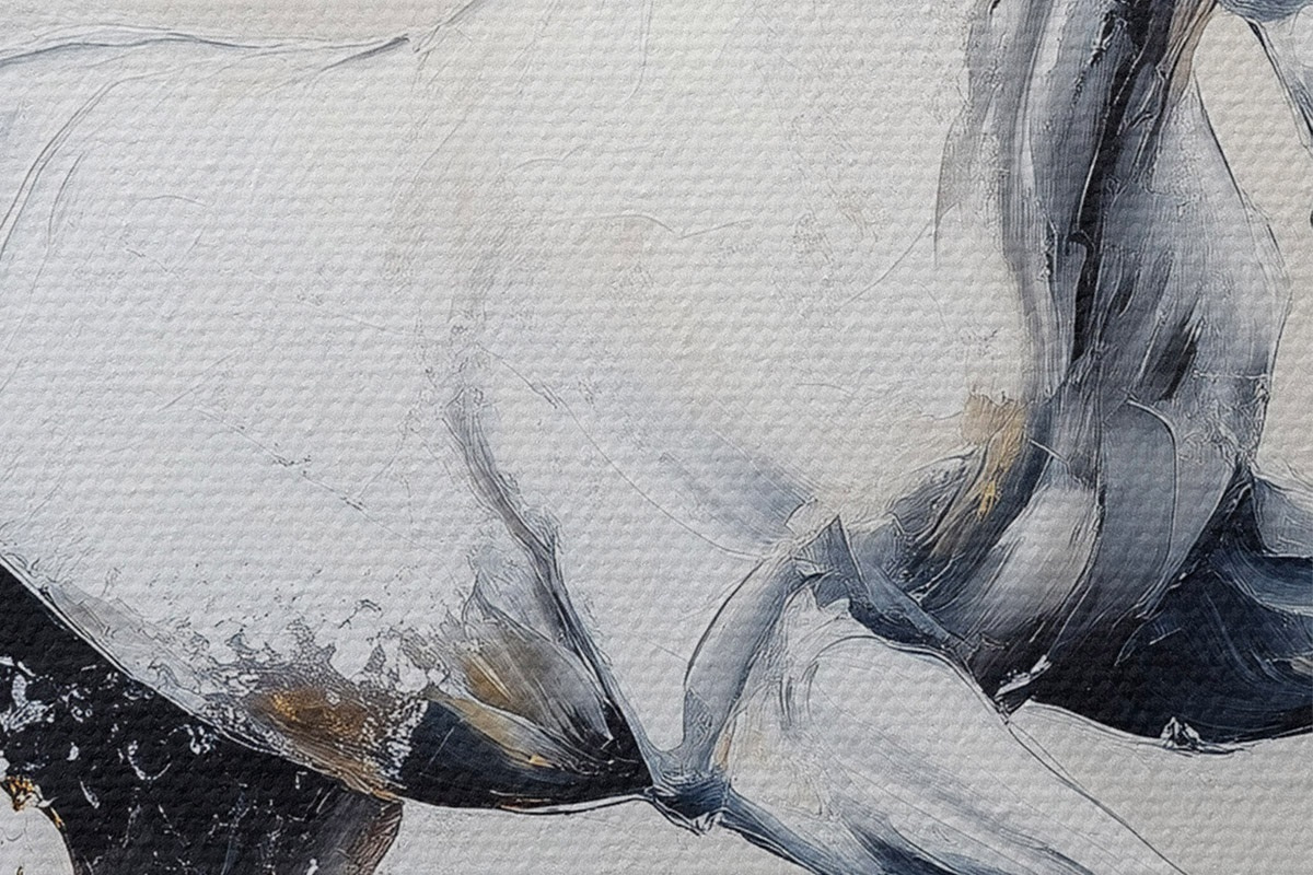 Immagine Cavallo bianco in corsa, disegno ad olio, animali Nr r43498