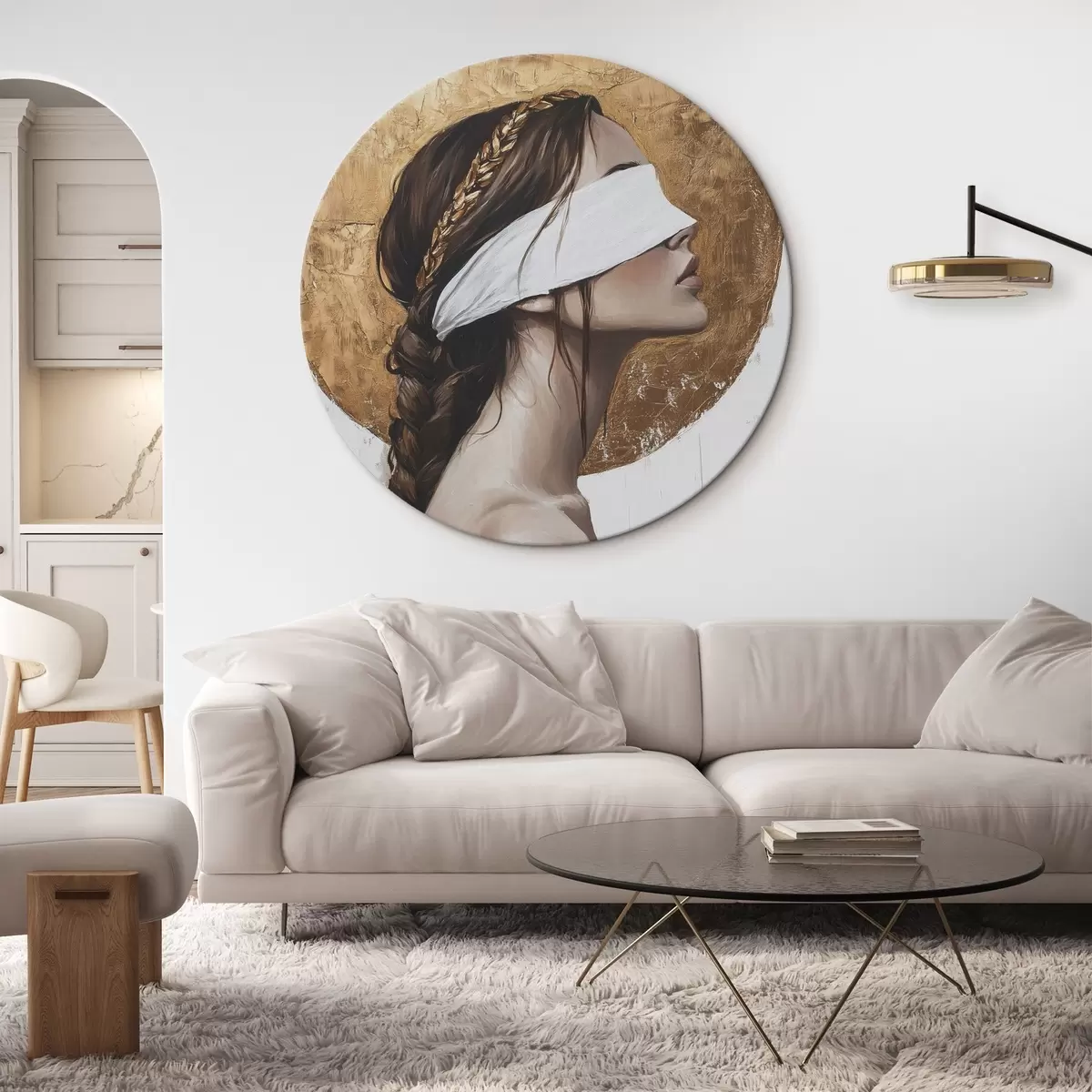 Quadri rotondi Donna con benda sugli occhi, Grecia, disegno in stile acrilico r43502