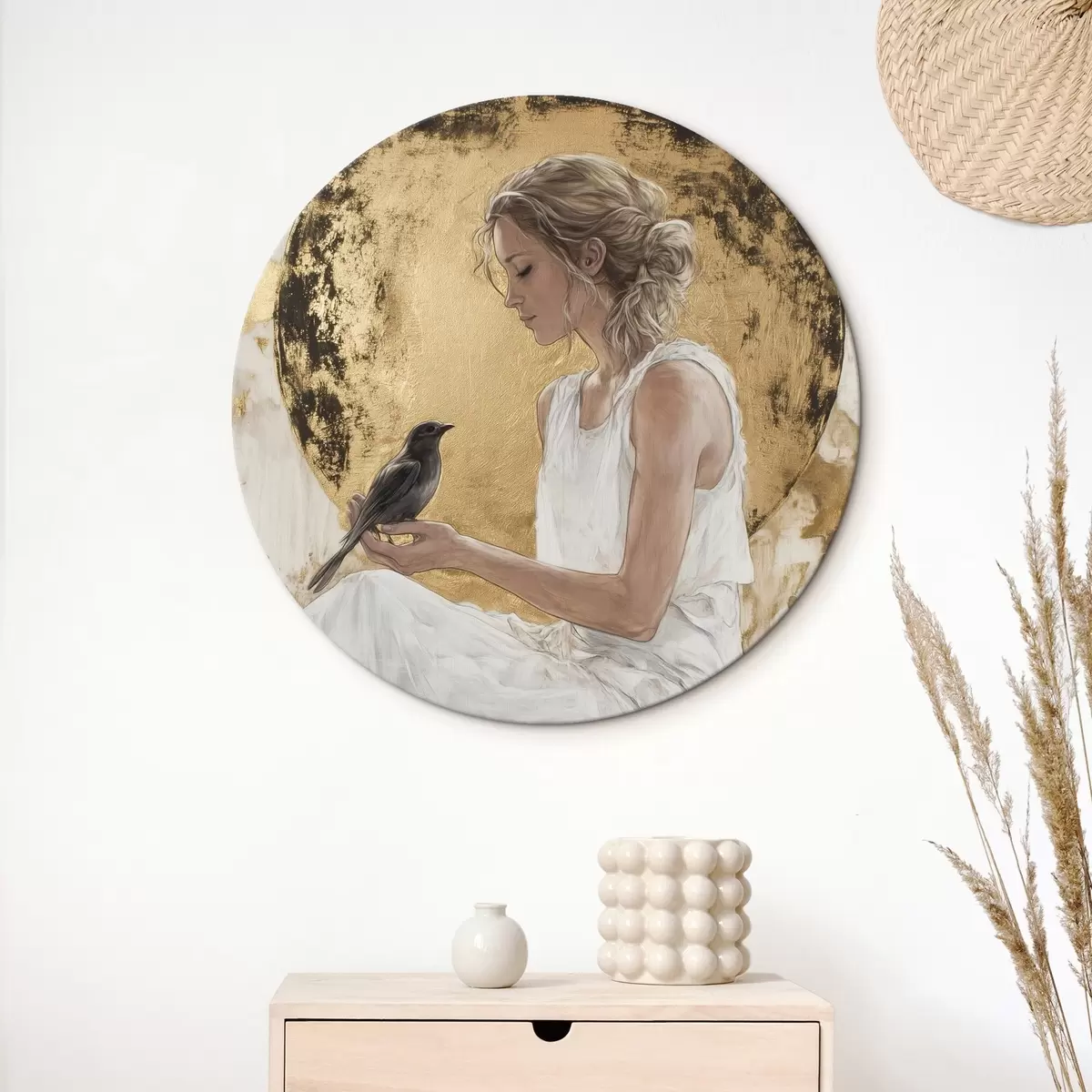 Quadri rotondi Bella donna con uccello, Grecia, disegno in stile acrilico r43503