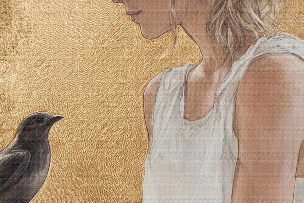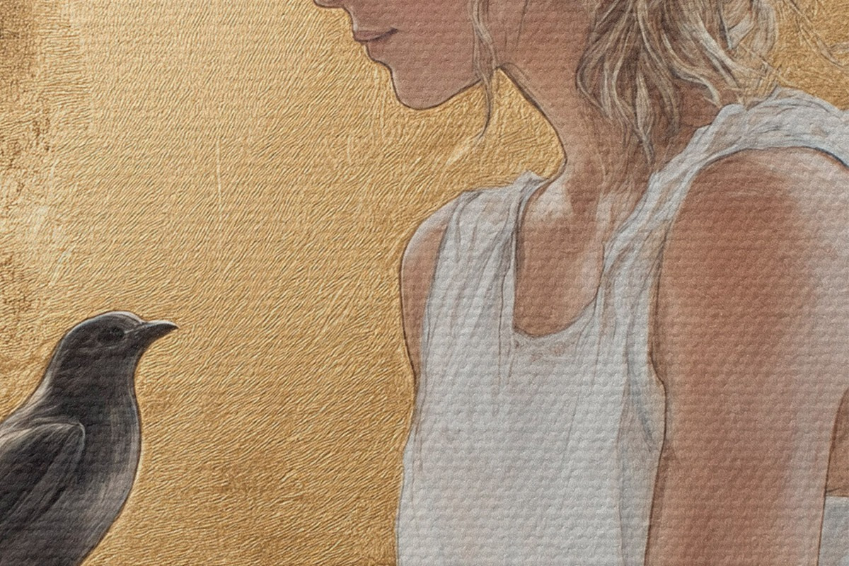 Immagine Bella donna con uccello, Grecia, disegno in stile acrilico Nr r43503