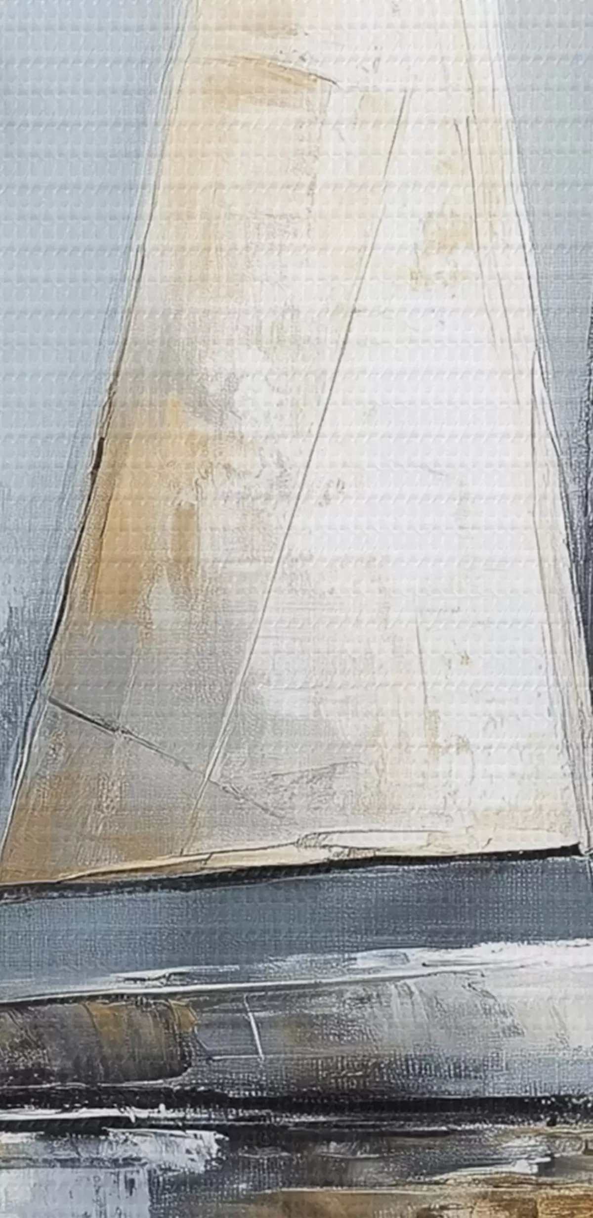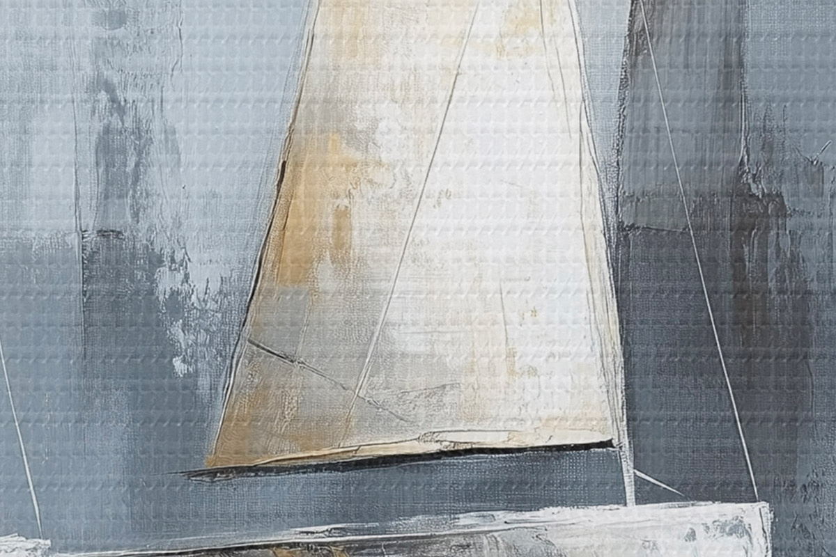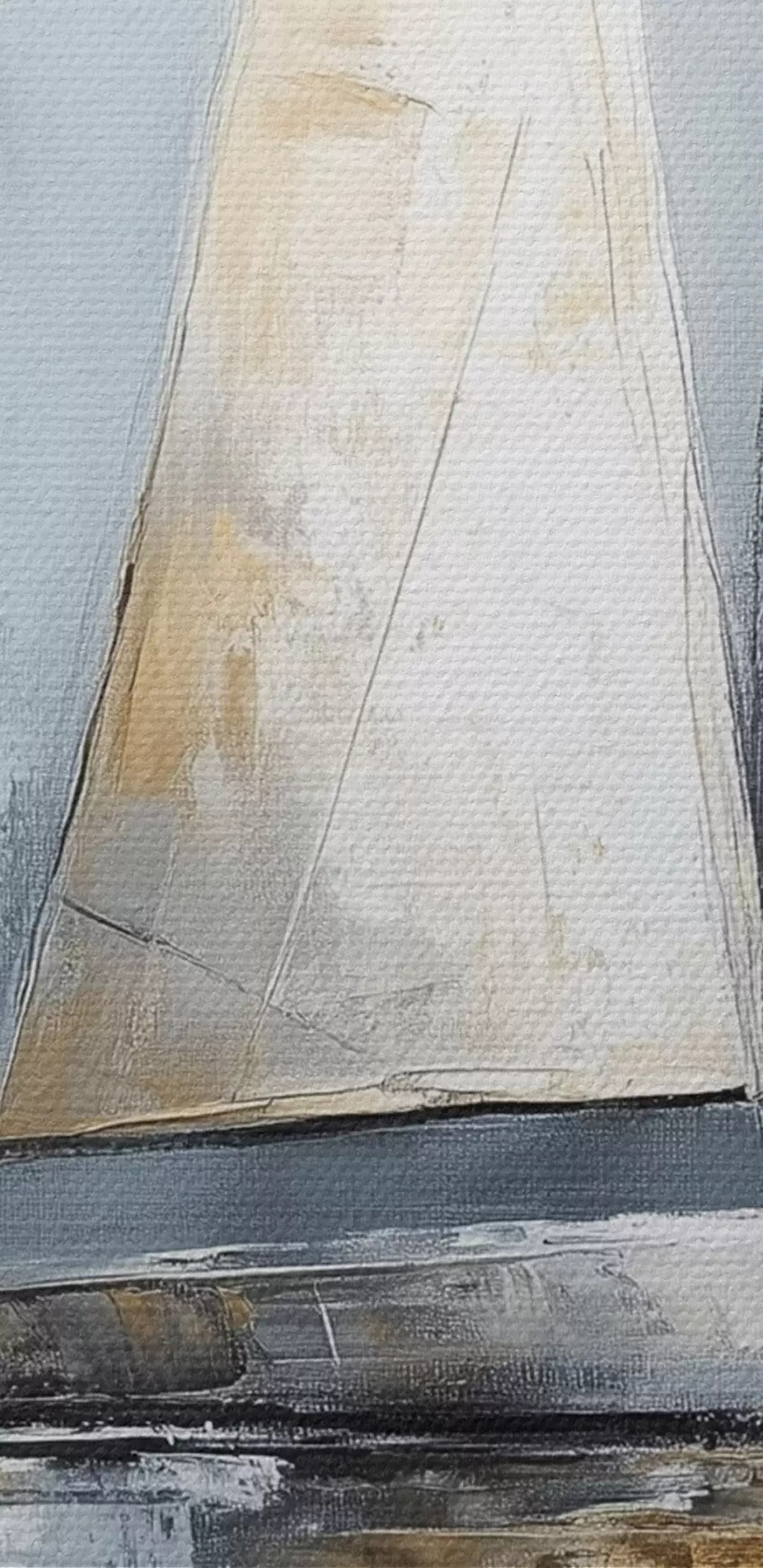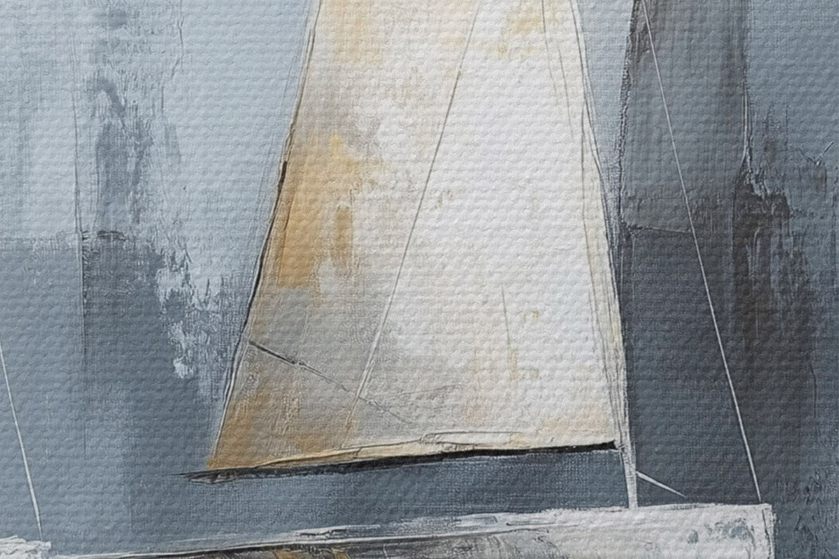 Immagine Barche a vela con riflessi nell'acqua, disegno ad olio, colori grigi Nr r43506