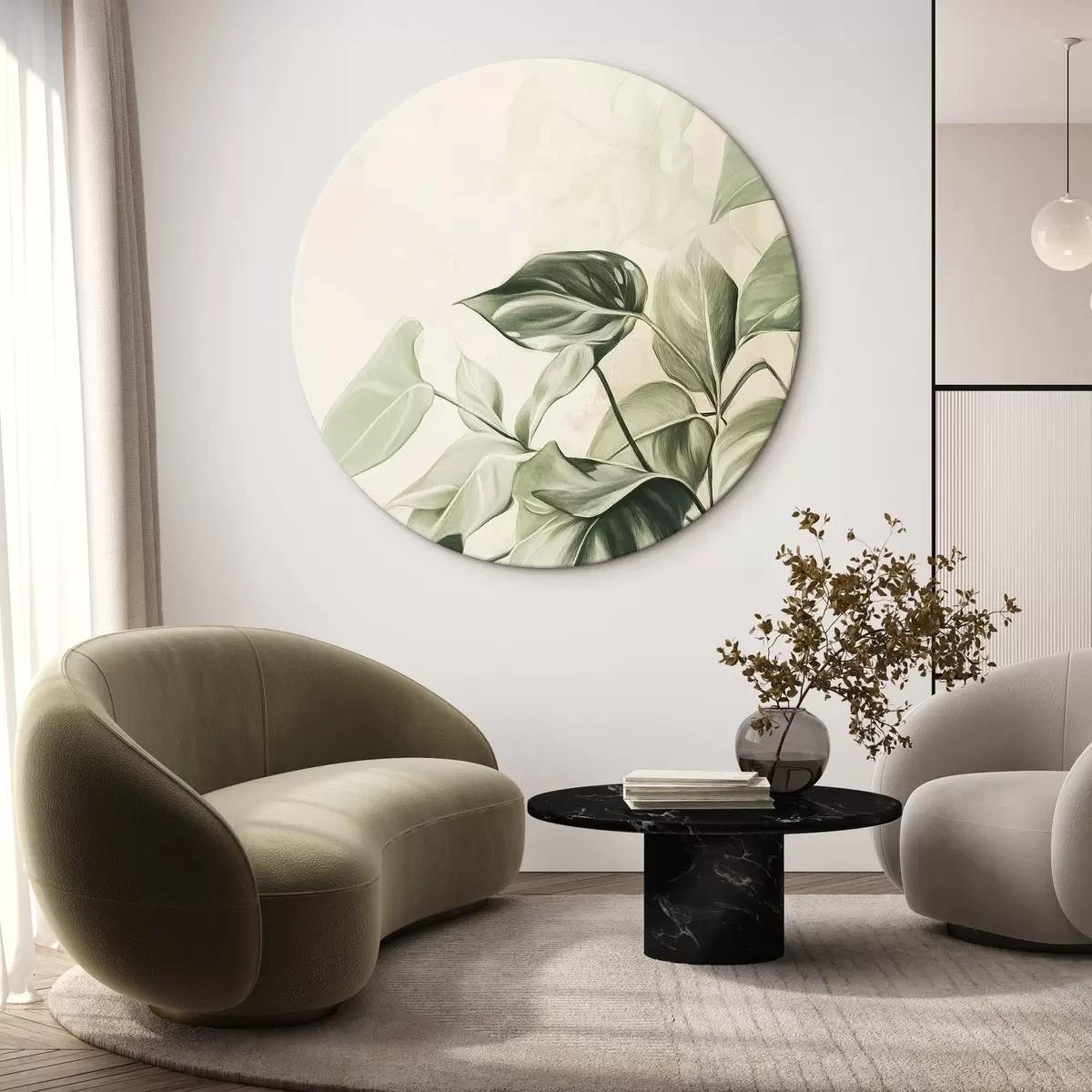 Quadri rotondi Foglie di palma, disegno a matita, tropicale, verde r43509