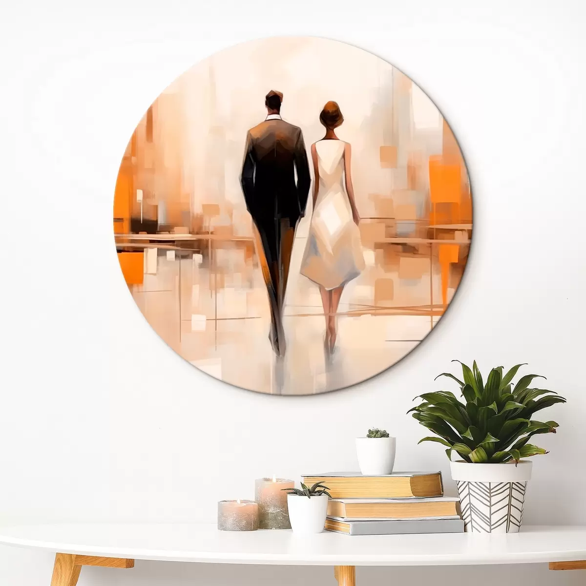 Quadri rotondi Astrazione con sagome di città e due figure r43516