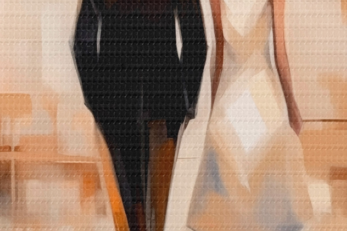 Immagine Astrazione con sagome di città e due figure Nr r43516