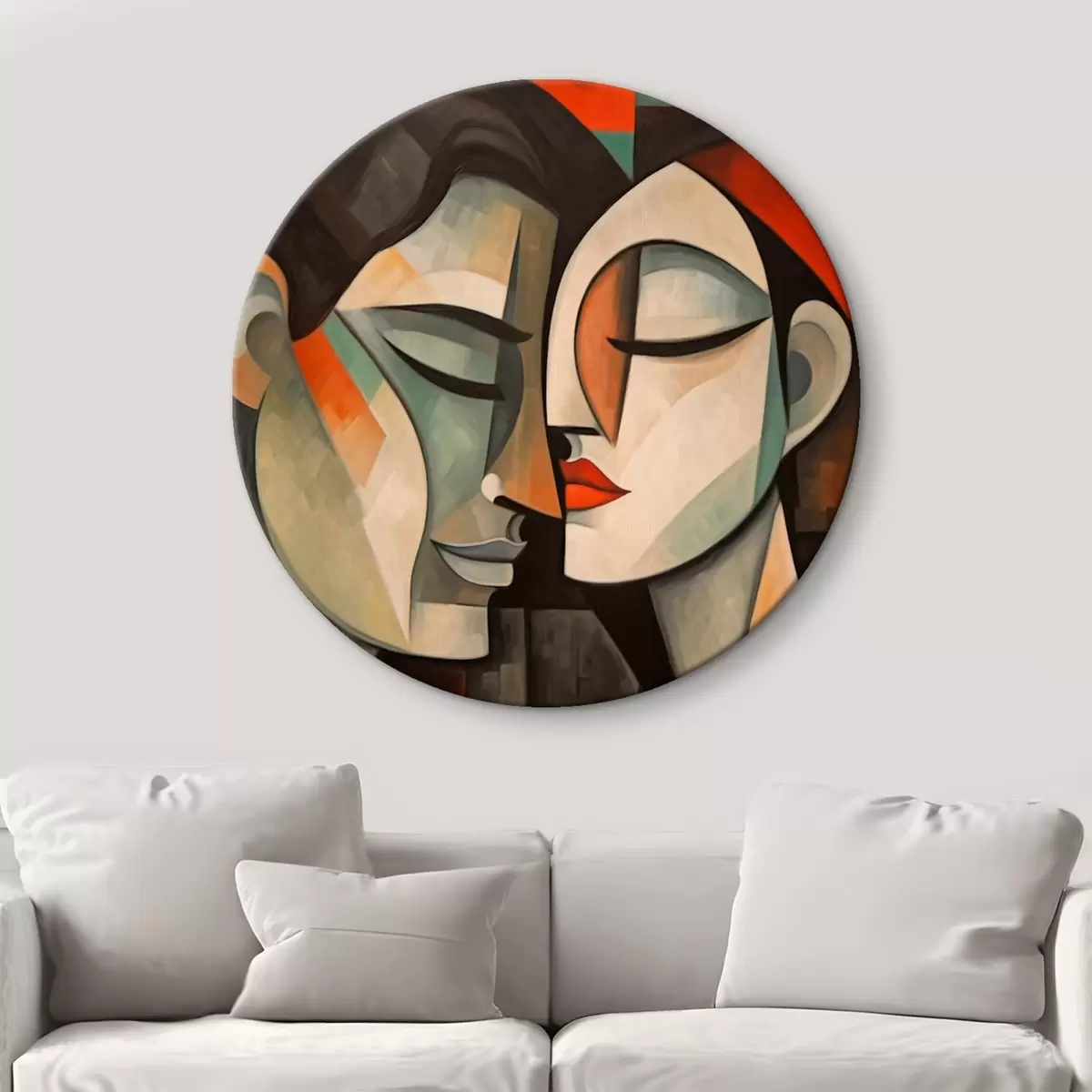 Quadri rotondi Ritratto astratto di donna dai colori caldi r43524