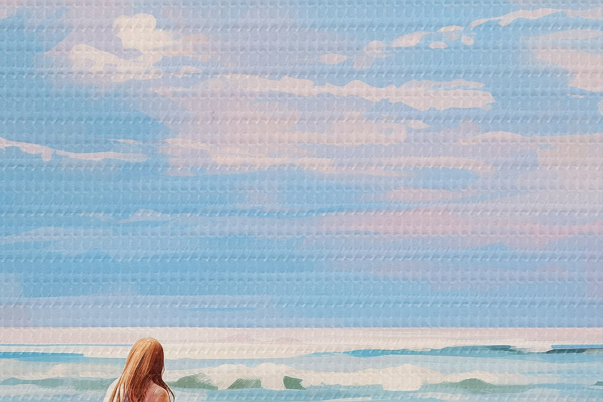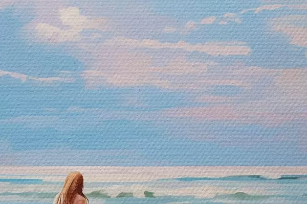 Immagine Ragazza che fa surf nell'oceano, estate, onde, stile acrilico Nr r43882
