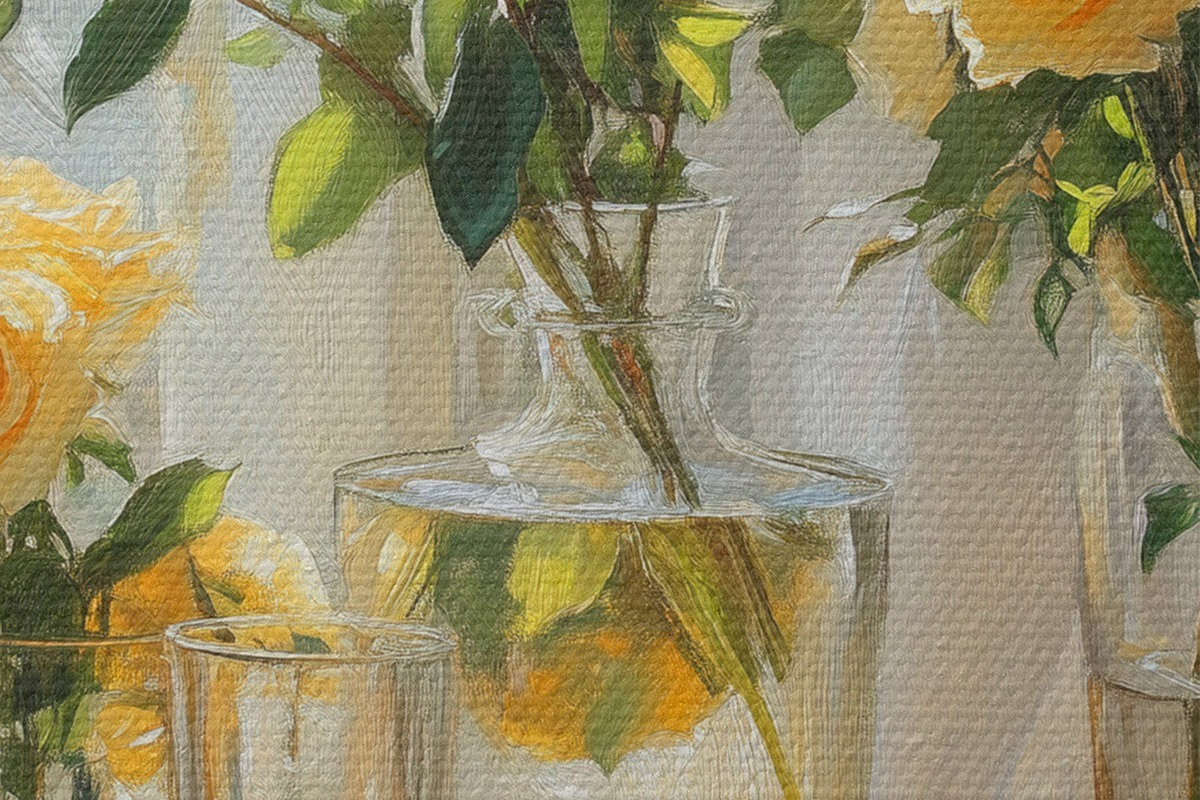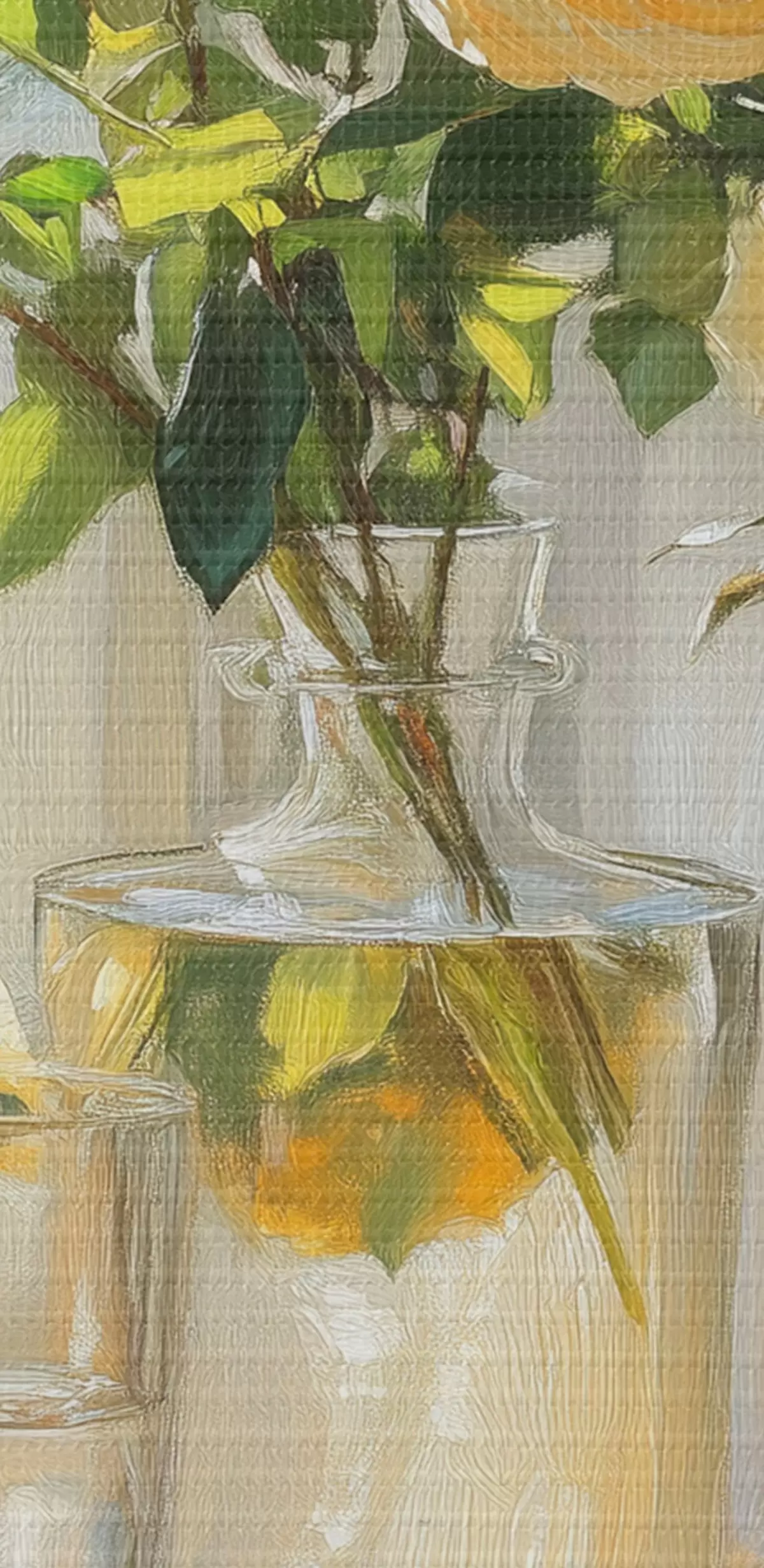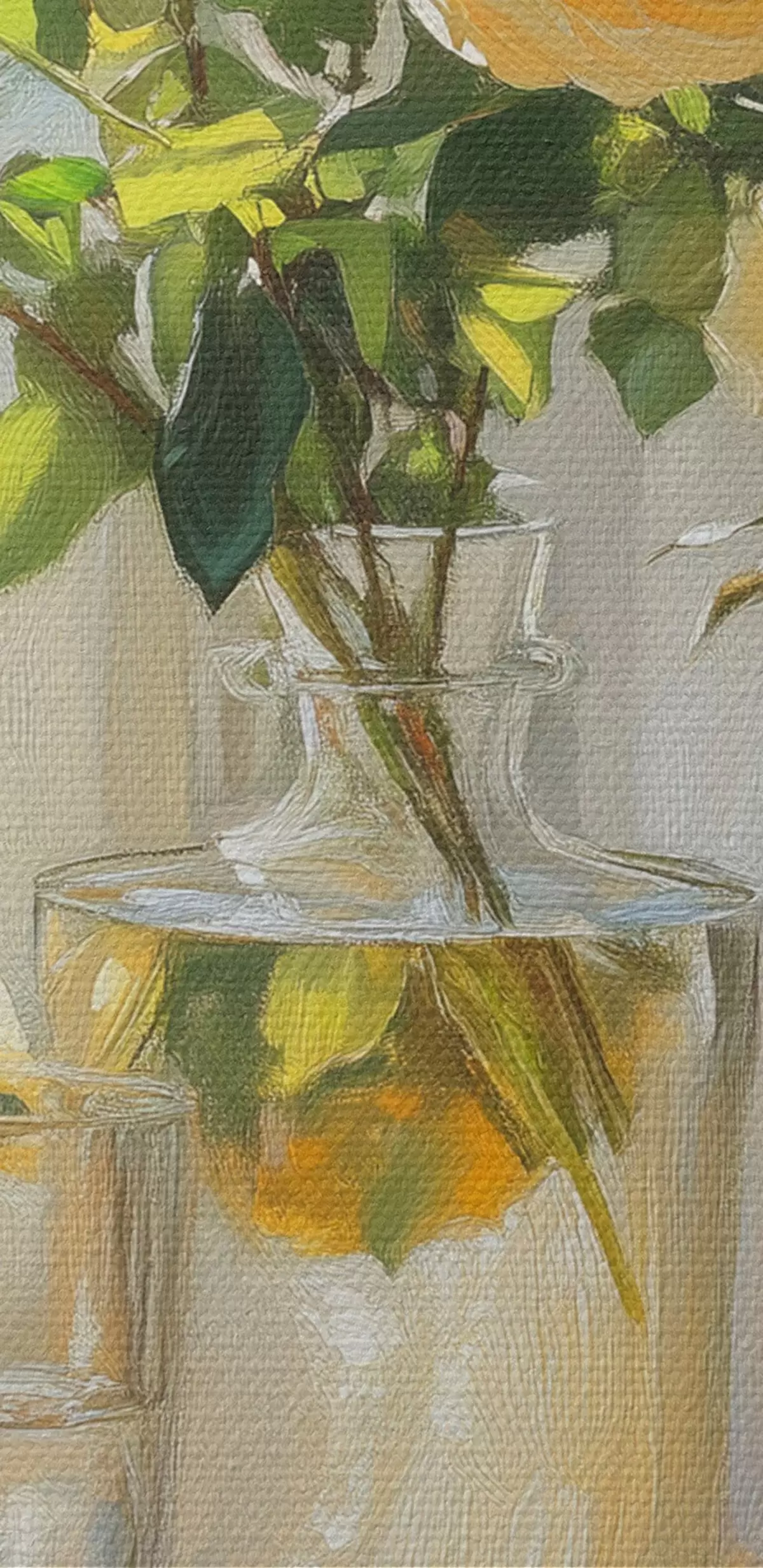 Immagine Rose in vaso, disegno a olio, luce delicata del sole, limoni, primavera Nr r43887