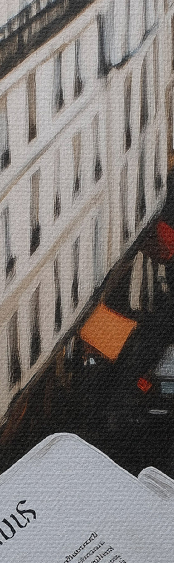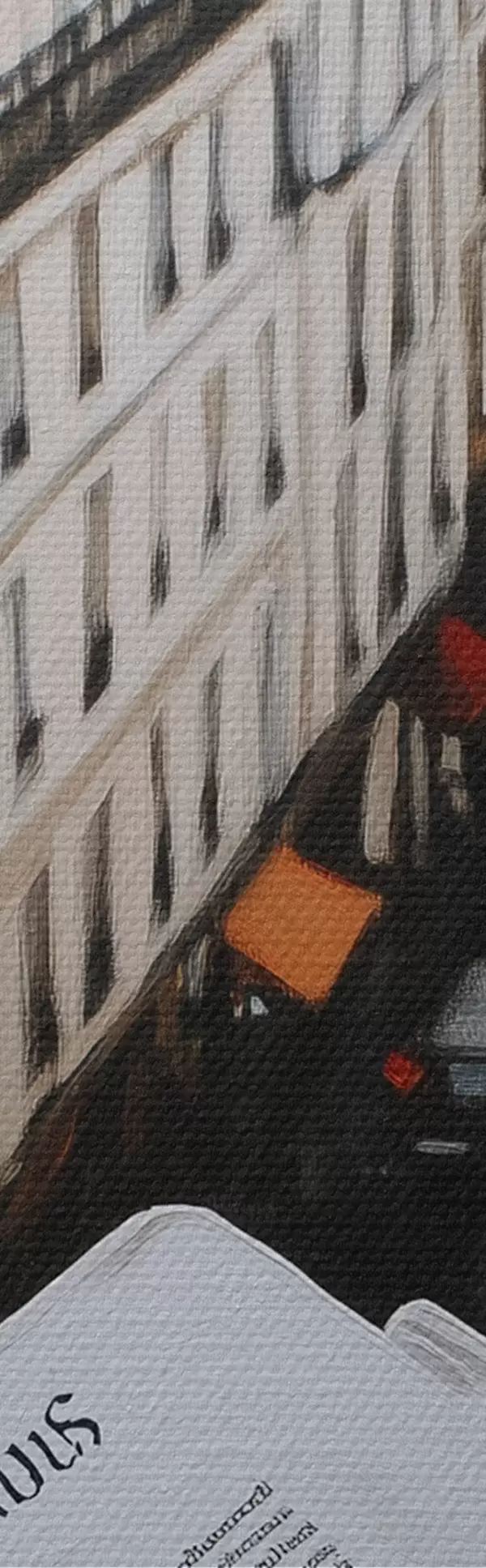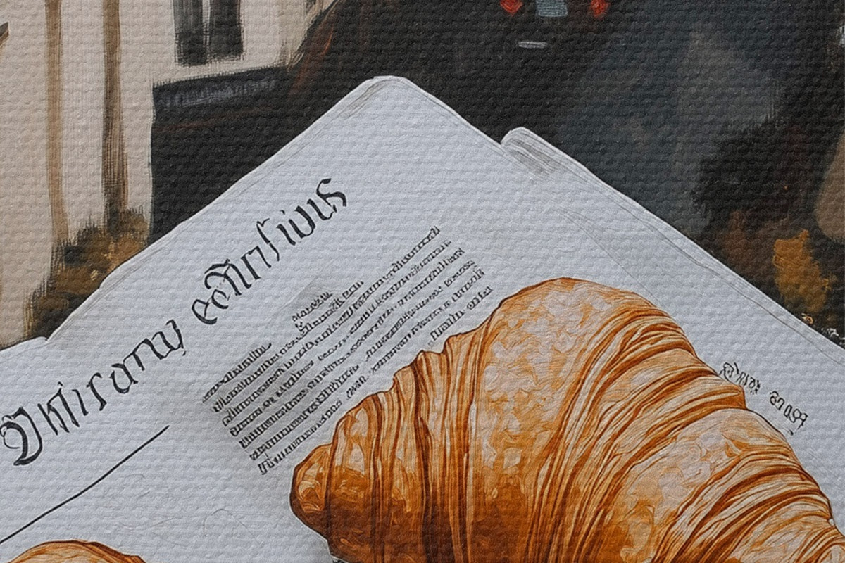 Immagine Caffè mattutino con croissant, strada della città, stile architettonico, olio Nr r43891