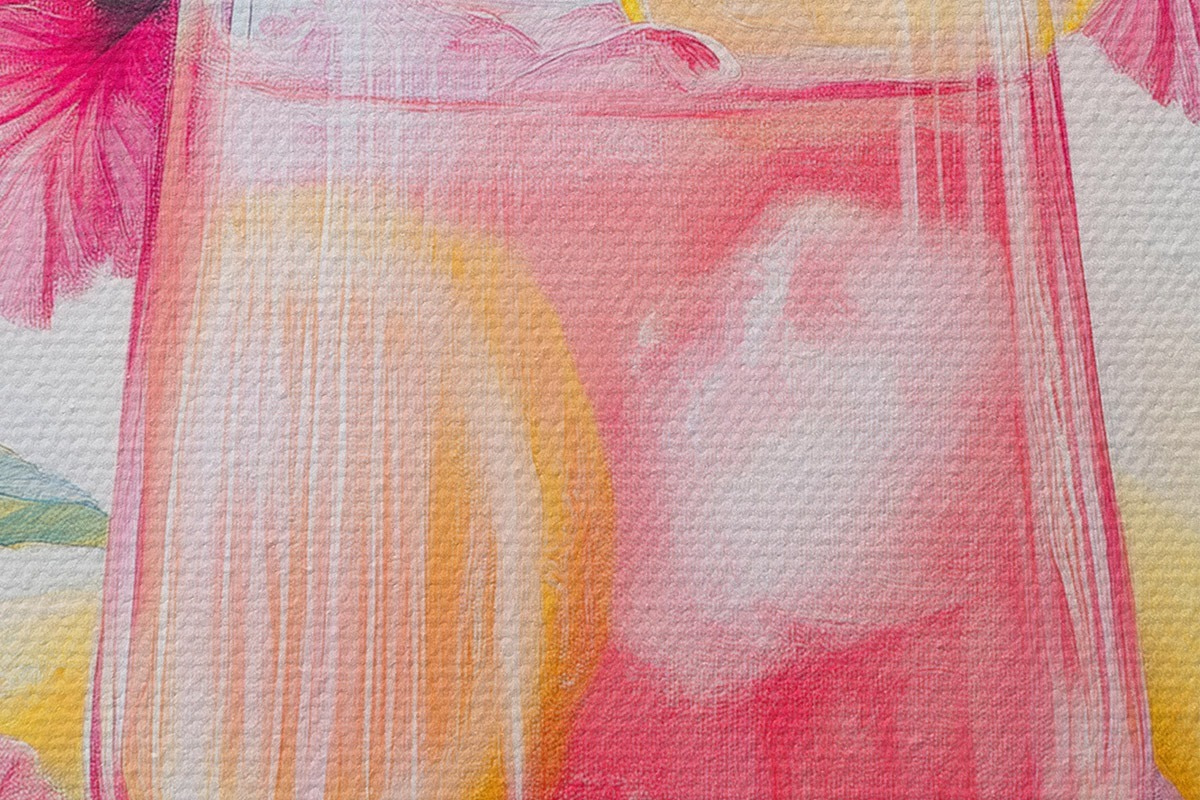 Immagine Cocktail colorato con fiori di ibisco e limoni, estate, stile acquerello Nr r43894