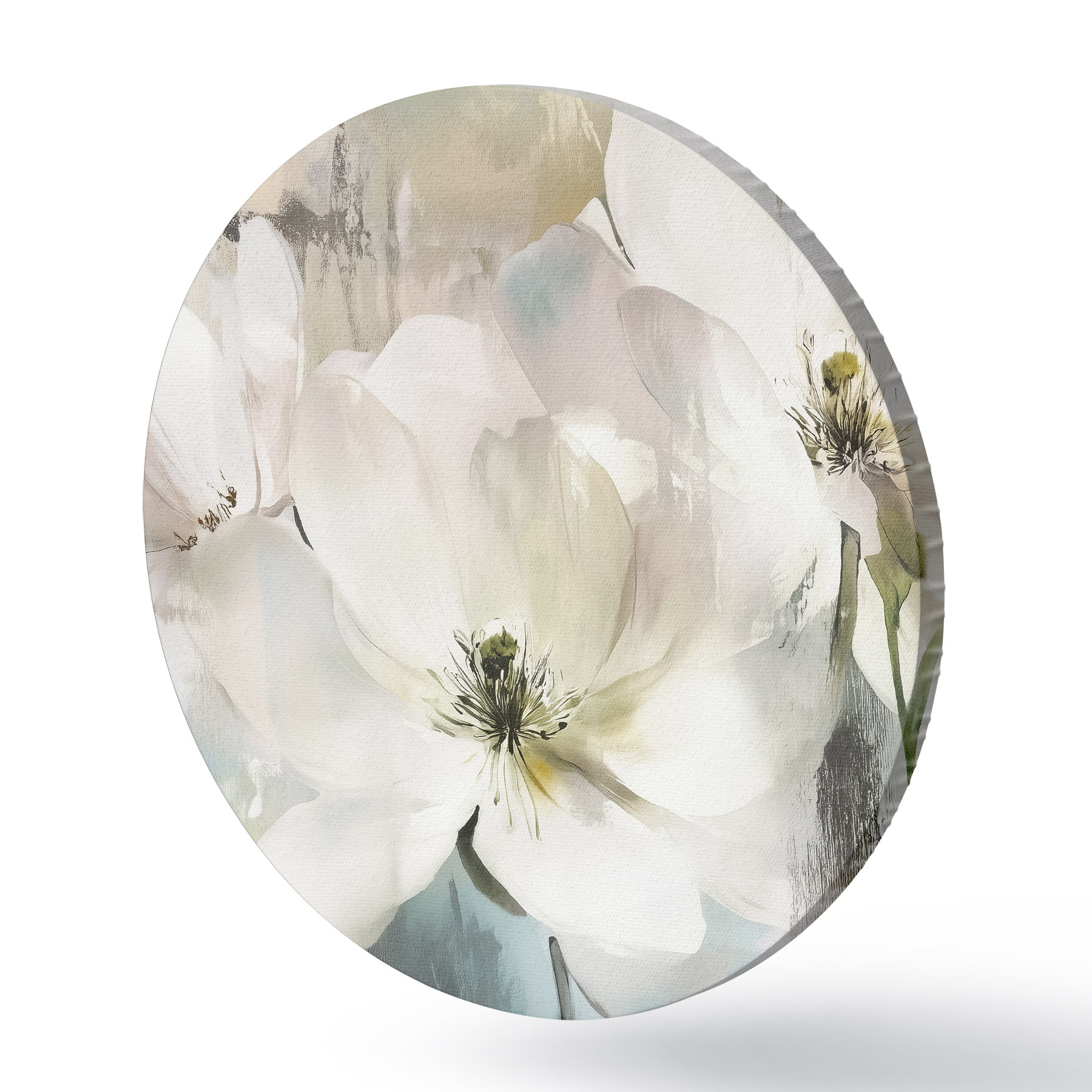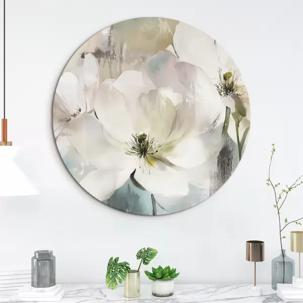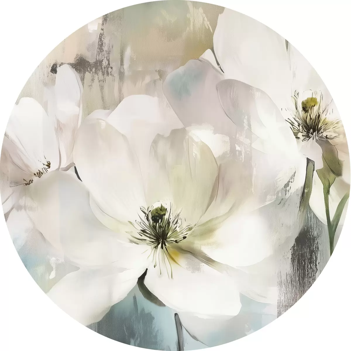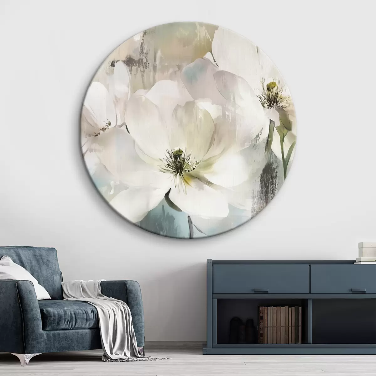 Quadri rotondi Fiori bianchi in stile pittura ad olio r43903
