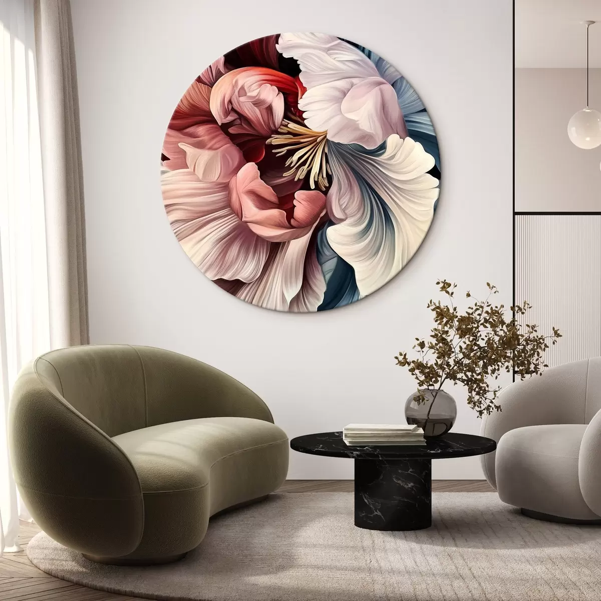 Quadri rotondi Fiore blu e rosso r43905