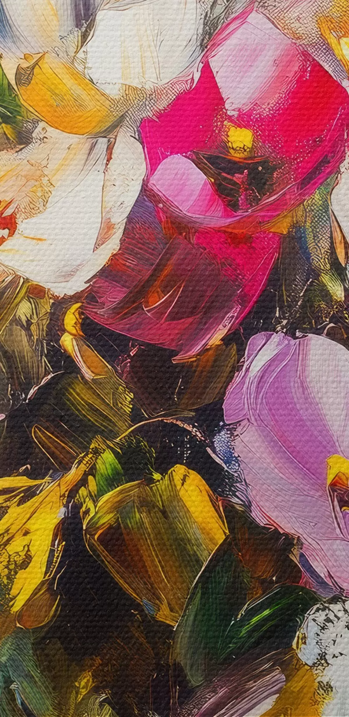 Sono disponibili tre tipi di materiale per l'ordinazione: Economic Canvas - materiale denso e resistente per la stampa digitale, identico alla tela del pittore, superficie impermeabile, riproduzione realistica dei dettagli, materiale a grana media. Premium Canvas - la trama ricorda la tela di un pittore (piccoli fili intrecciati). Riproduzione morbida e dettagliata dell'immagine su una superficie opaca. Eco-Premium - tessuto di alta qualità in 100% cotone. Grazie alle fibre naturali di cotone, il materiale è durevole e resistente all'usura. Eccellente riproduzione dei colori e dei dettagli.