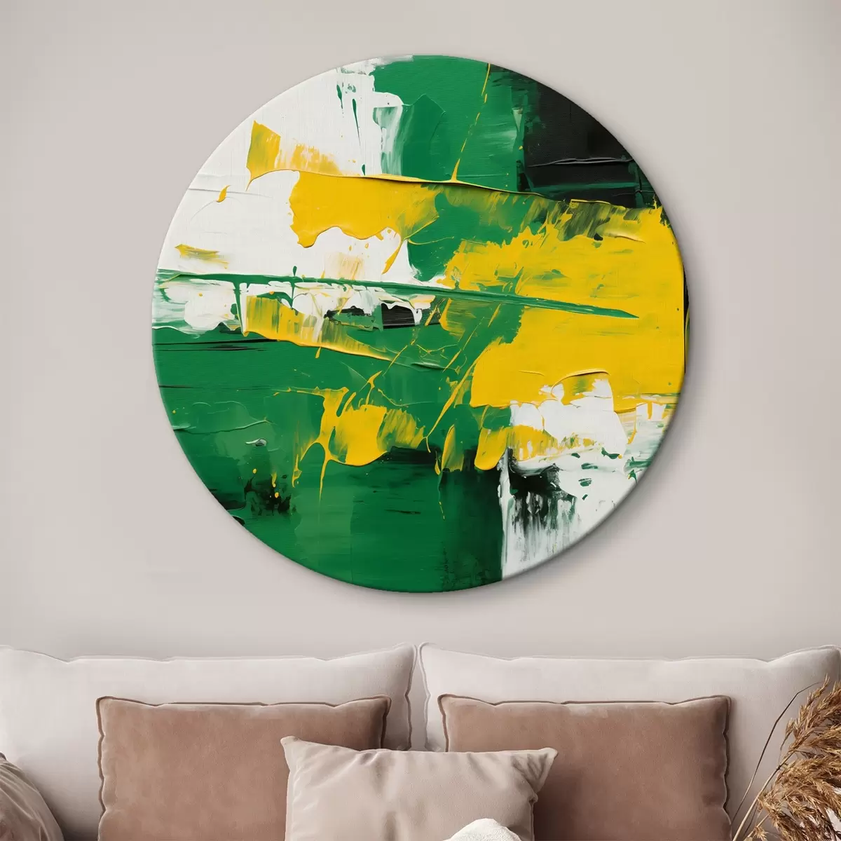 Quadri rotondi Pittura ad olio astratta con colori bianchi, verdi e gialli in stile pittura ad olio r43944