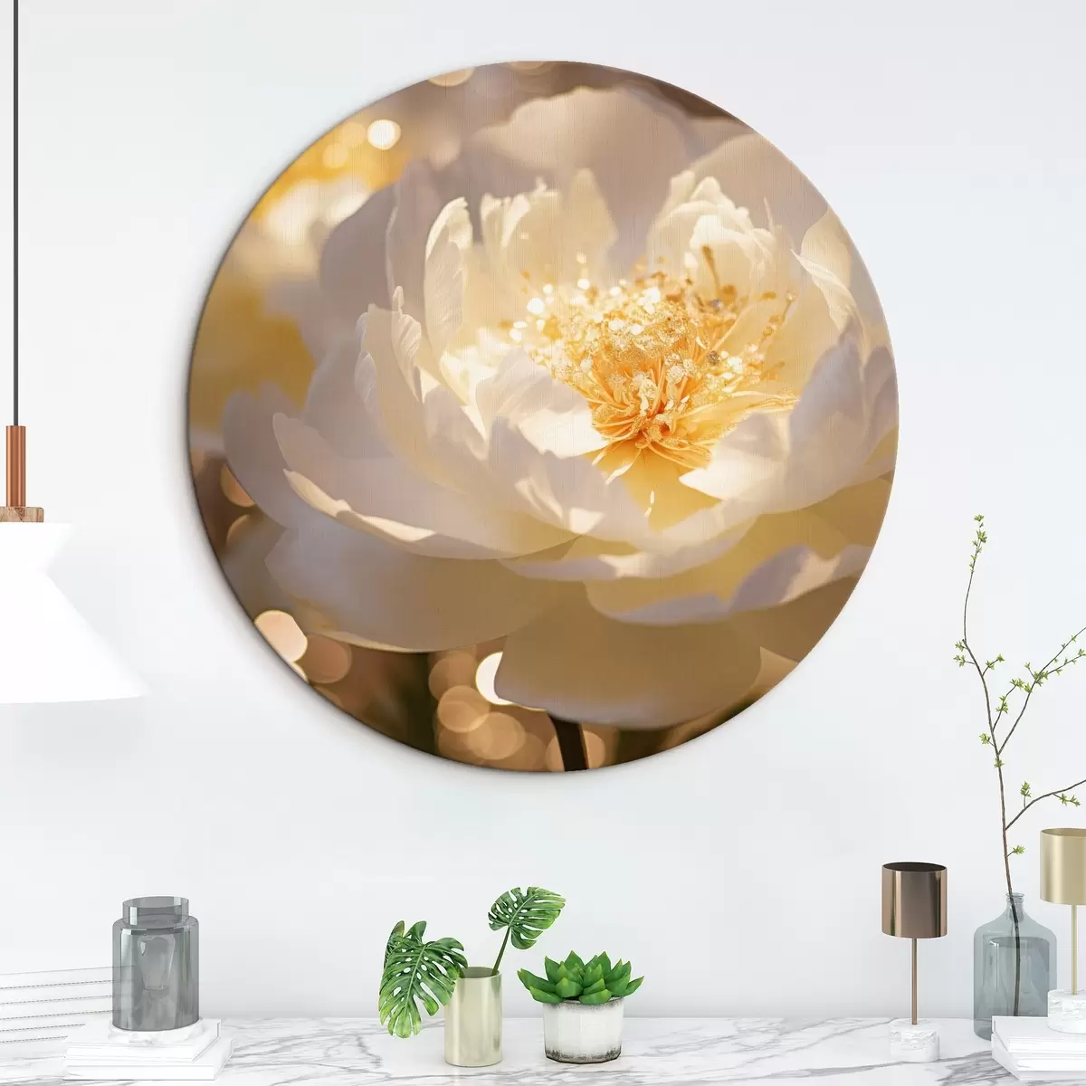 Quadri rotondi Fiore bianco su sfondo sfocato r43947