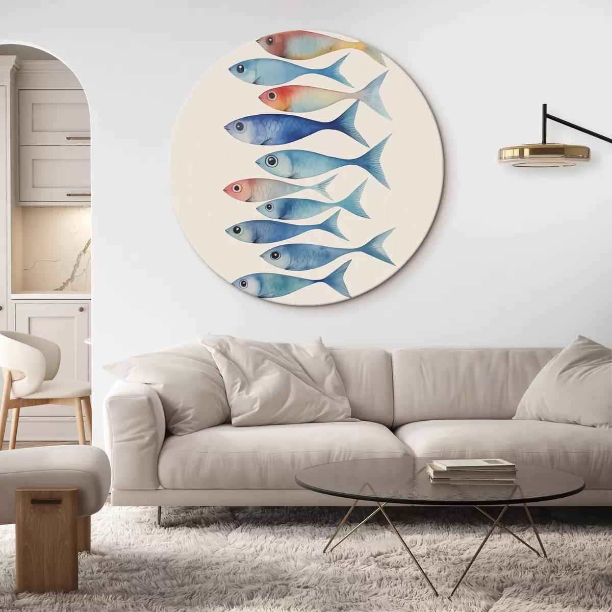 Quadri rotondi Pesce minimalismo imitazione acquerello r43960